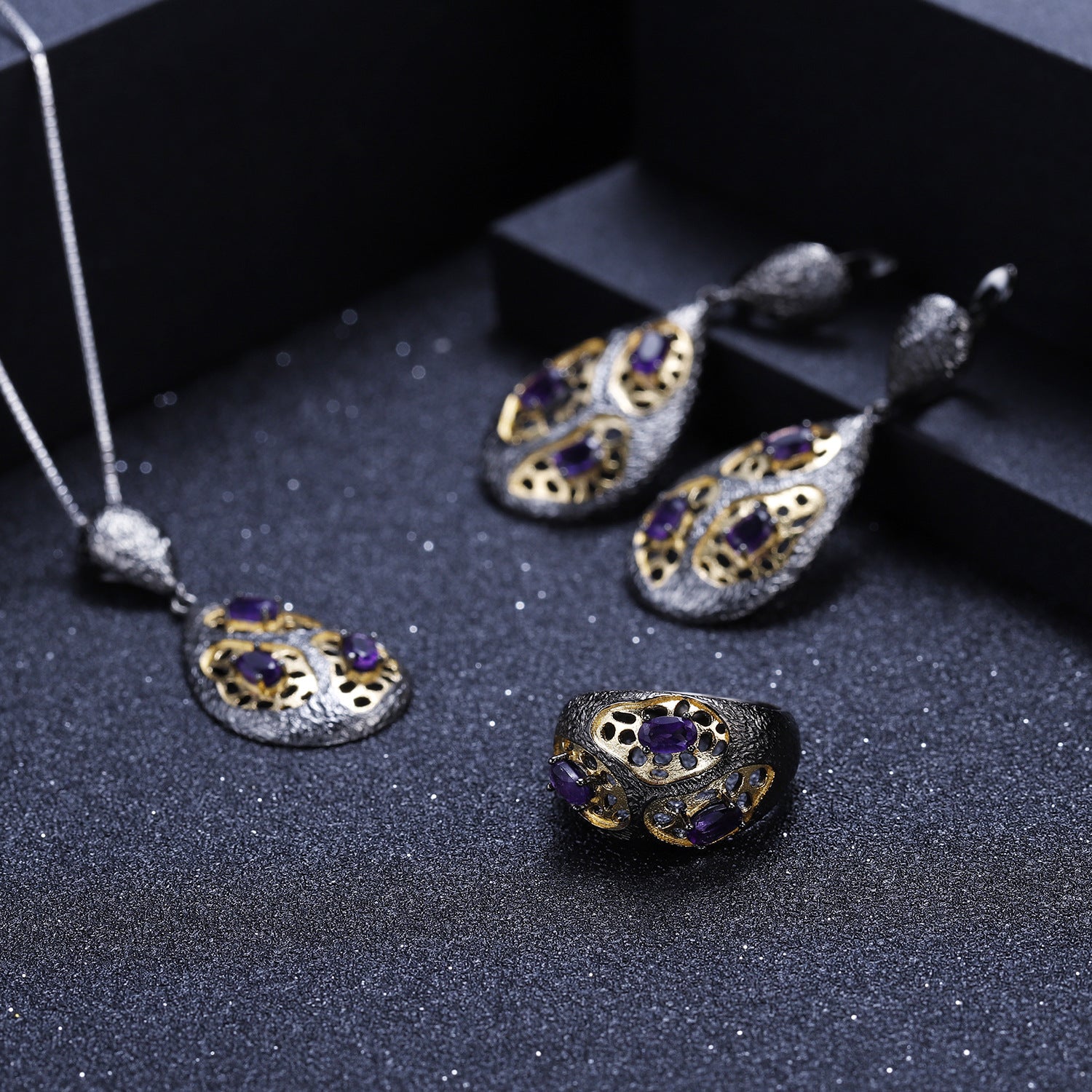 Italian Craft Designer Ring Retro Style High-end Design s925Silver Natural Amethyst Ring