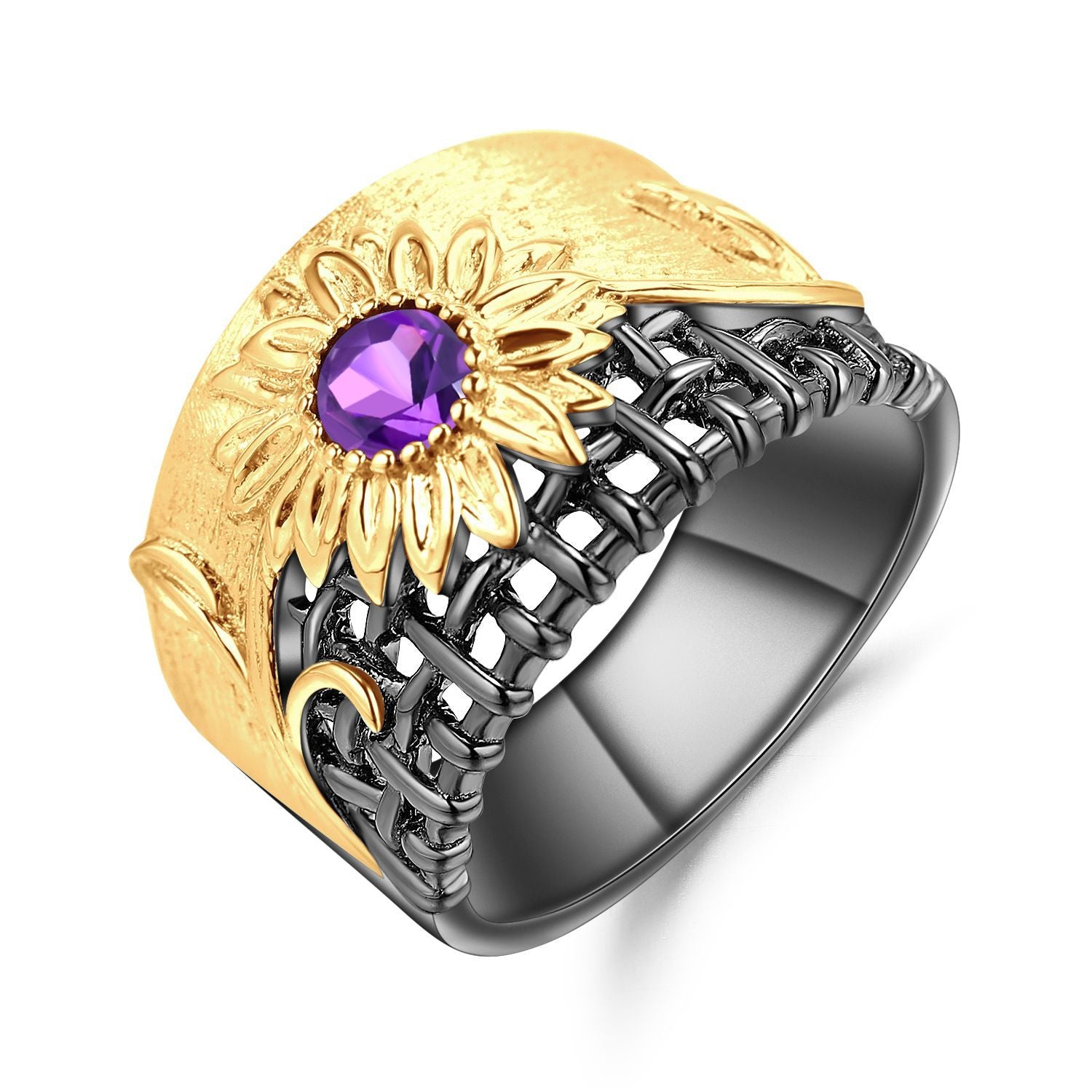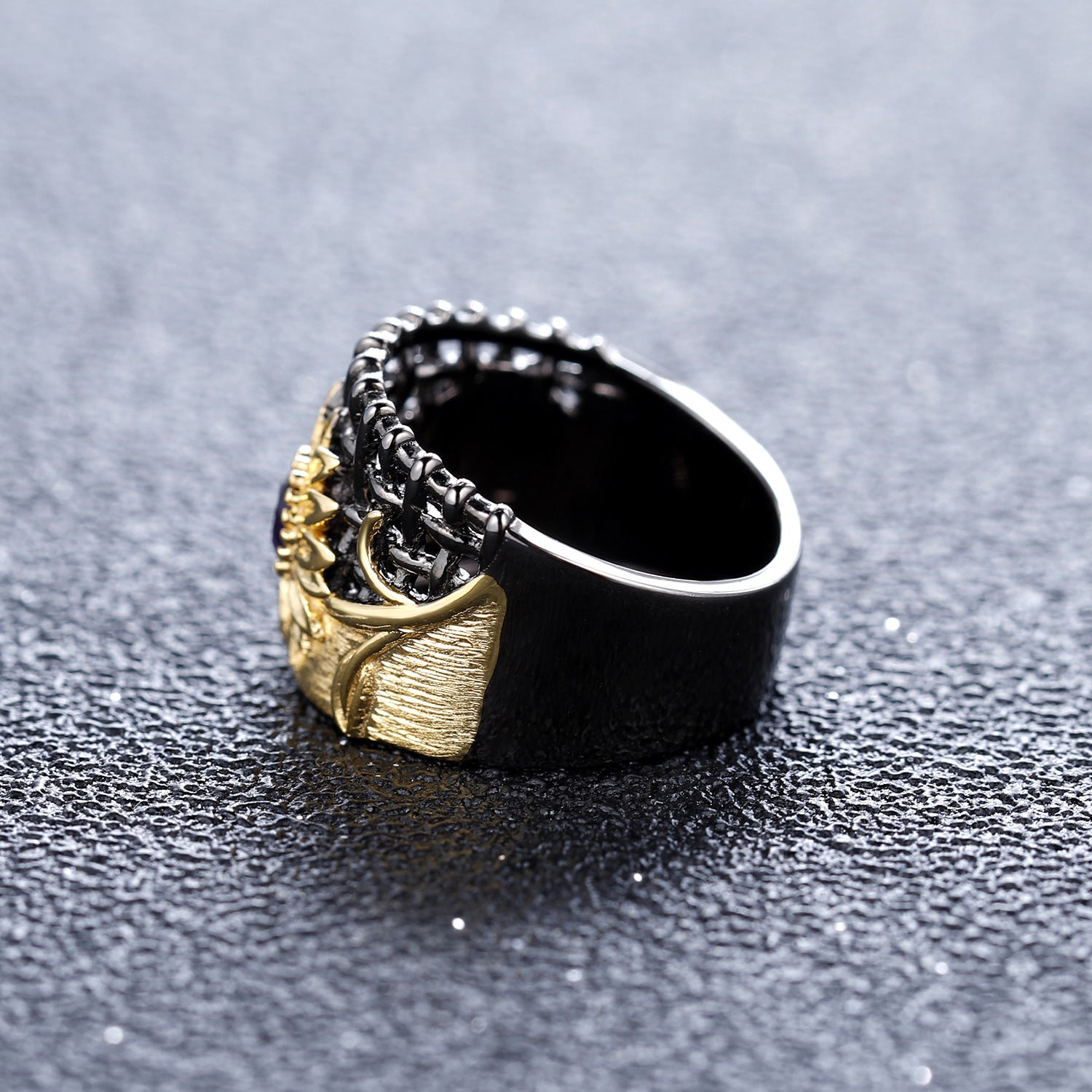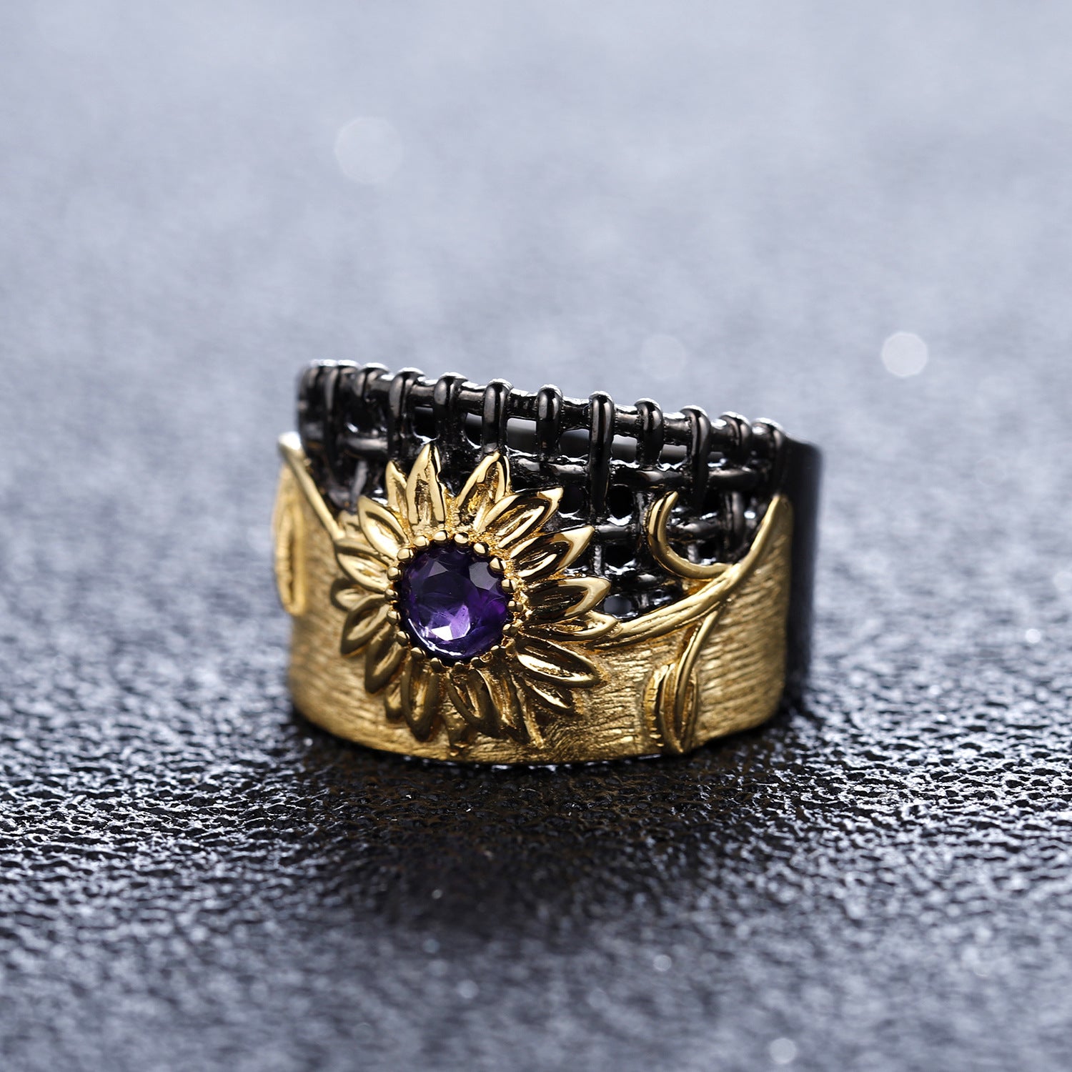 Italian Craft Designer Ring Vintage Style Red Spider Lily Design925Silver Natural Amethyst Ring