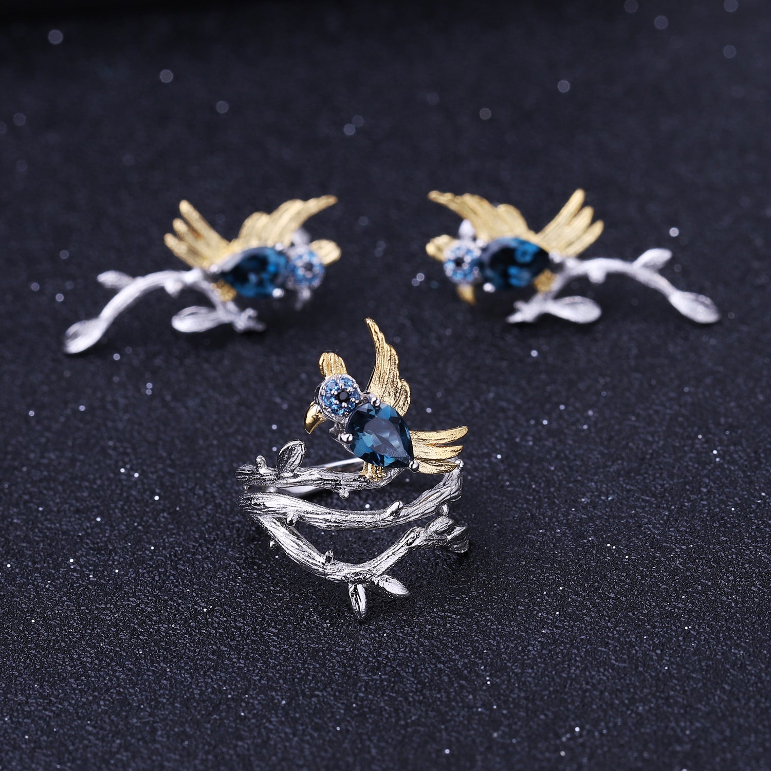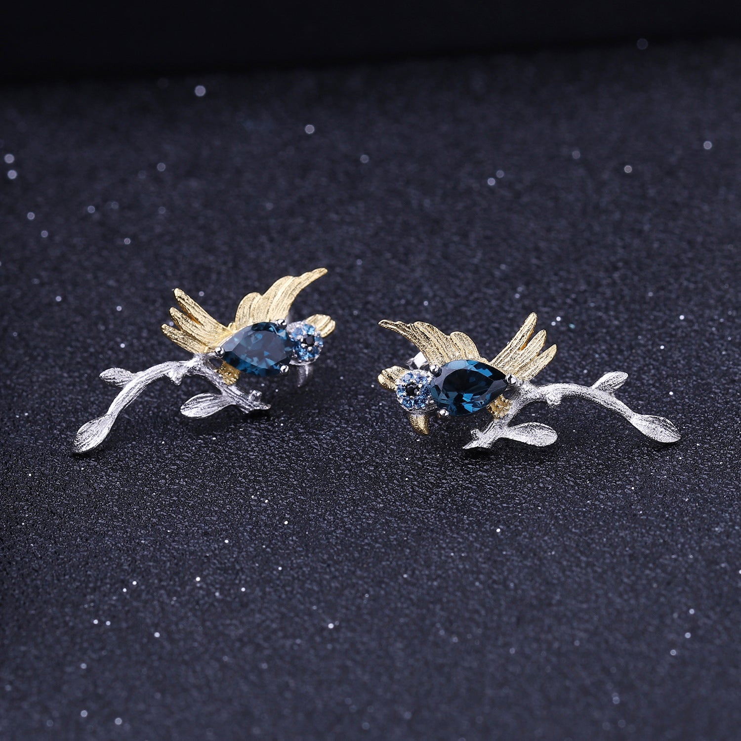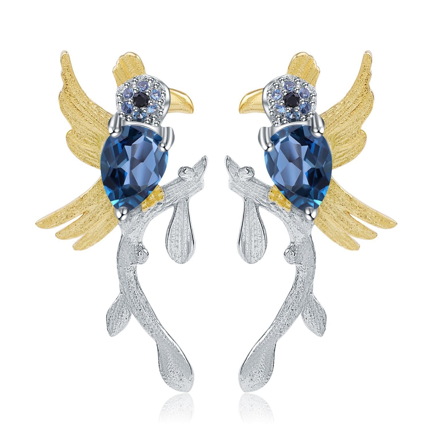 Italian Craft Earrings Natural Style Magpie s925Silver Natural London Blue Topaz Earrings Russia