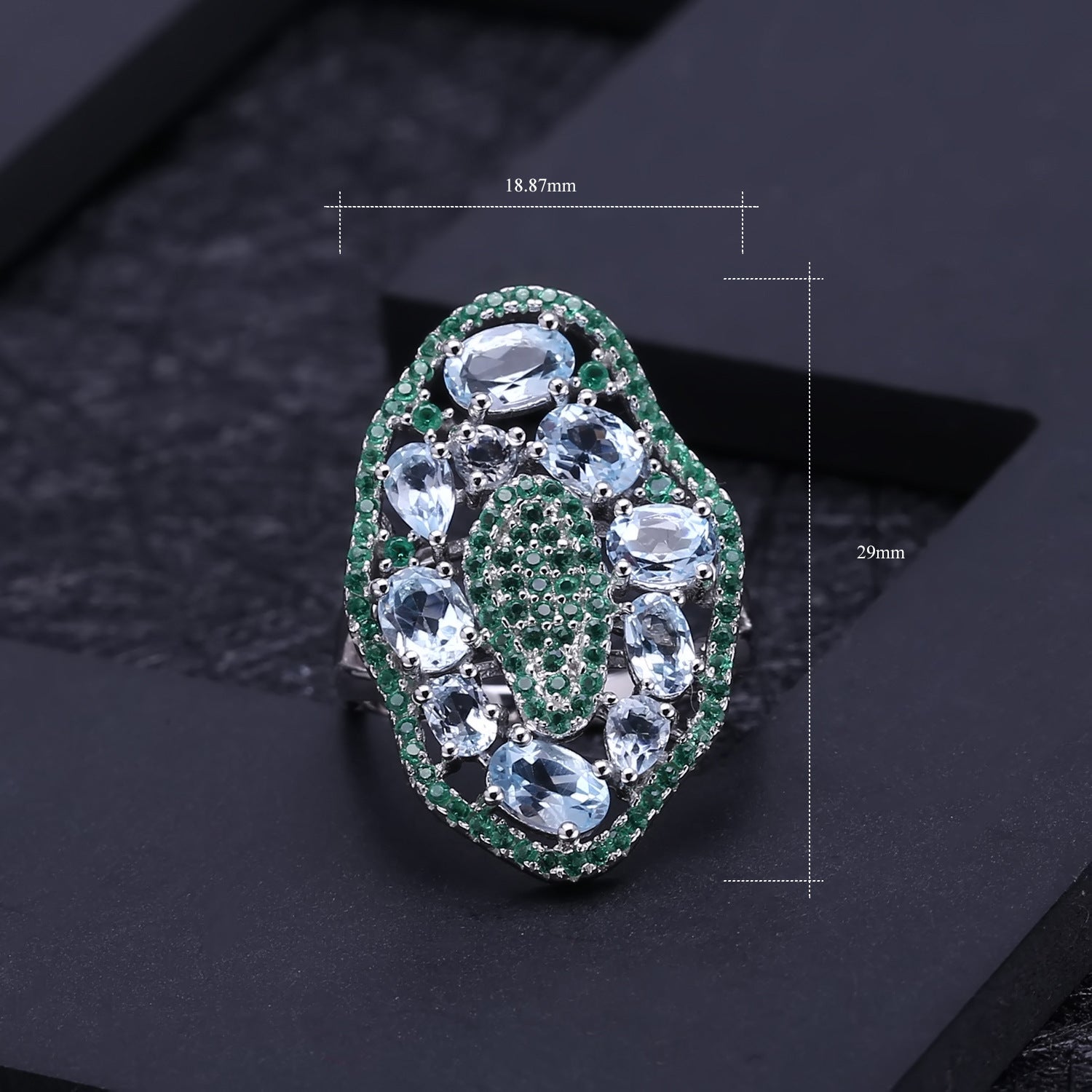 Italian Craft Jewelry Designer Ring Vintage Luxury s925Silver Natural Gemstone Topaz Ring