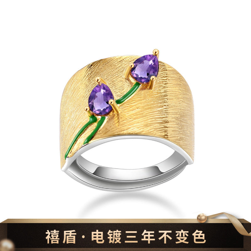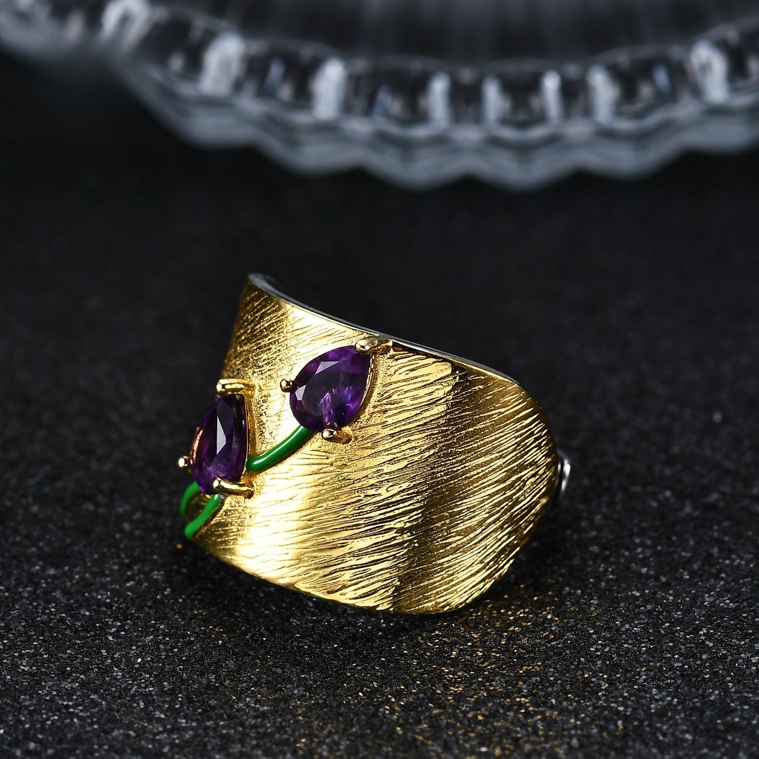 Italian Craft Jewelry Retro Style Designer Ring s925Silver Inlaid Natural Gemstone Amethyst Ring