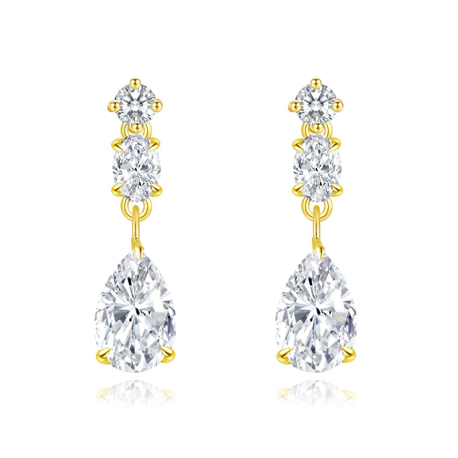 Light Luxury14k Gold Inlaid Cultivated Diamond Earrings for Women, Unique Pear-Shaped Water Drop Earrings k Gold earrings2024Popular
