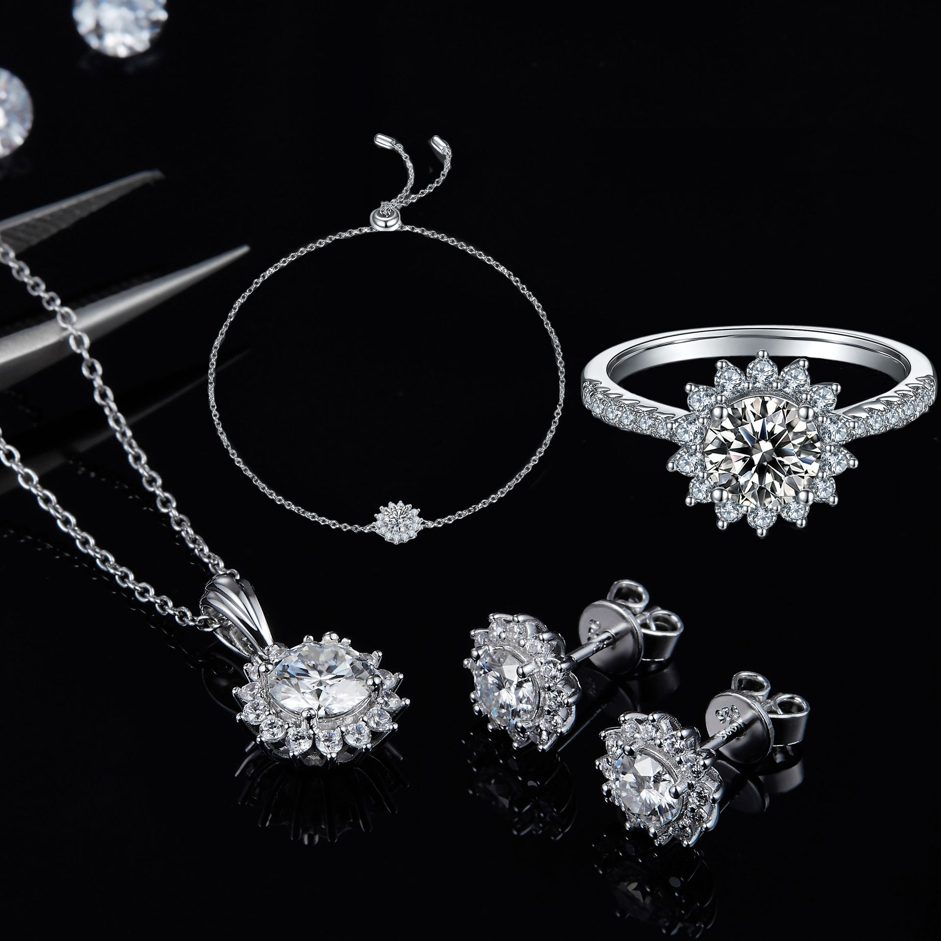 Light Luxury925Silver Necklace Earrings Bracelet Three-Piece Set Sunflower Design Inlaid Moissanite Pendant Jewelry Set