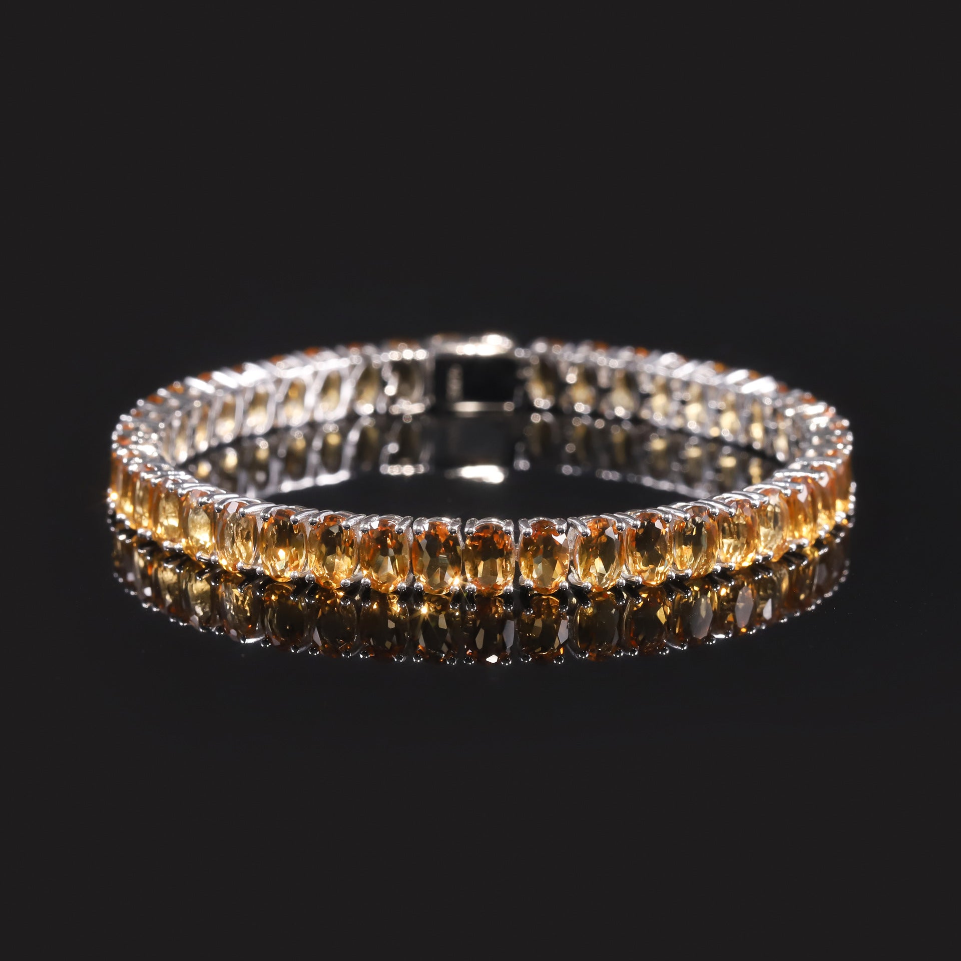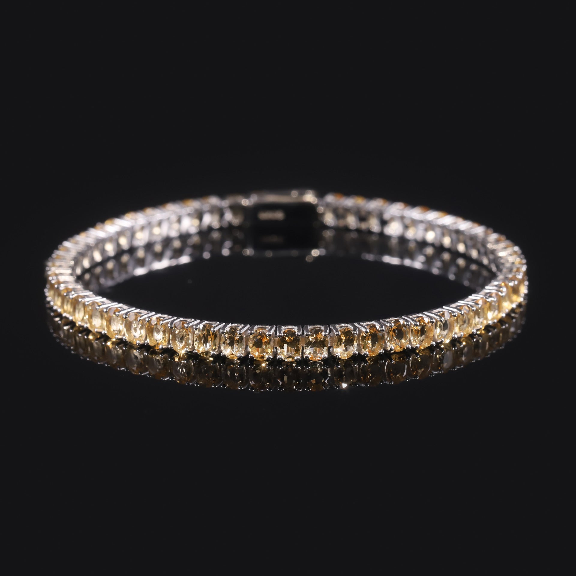 Gemstone Tennis Chain Oval High Quality s925New Style Pure Silver Inlaid Natural Yellow Crystal Bracelet