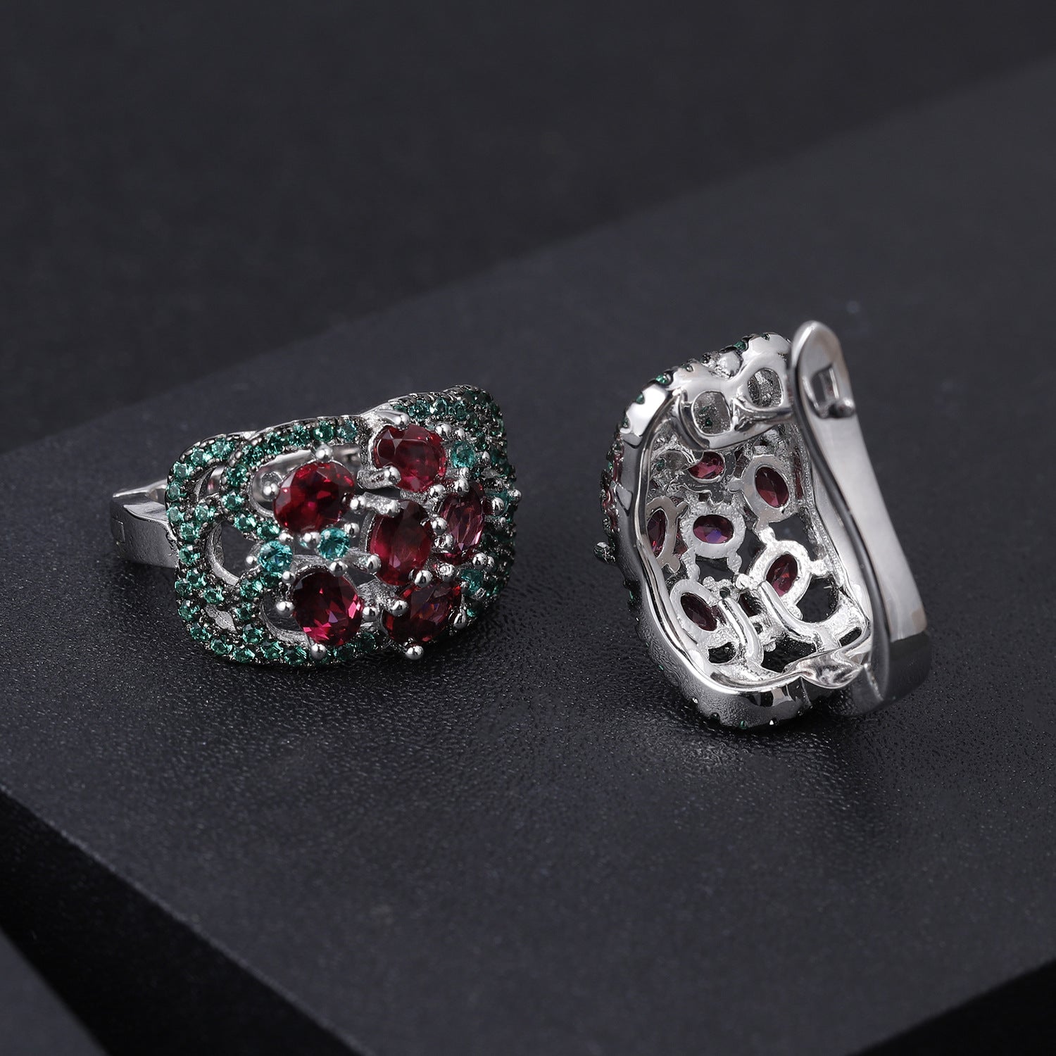 Luxurious and High-end Natural Rose Pomegranate Earrings Flourishing Series925Silver Inlaid Gemstone Stud Earrings