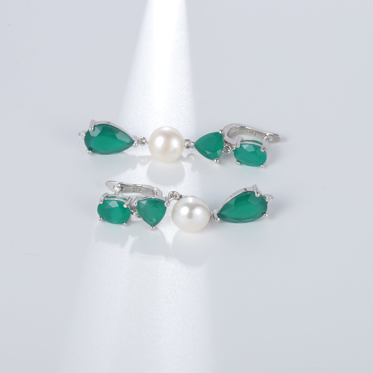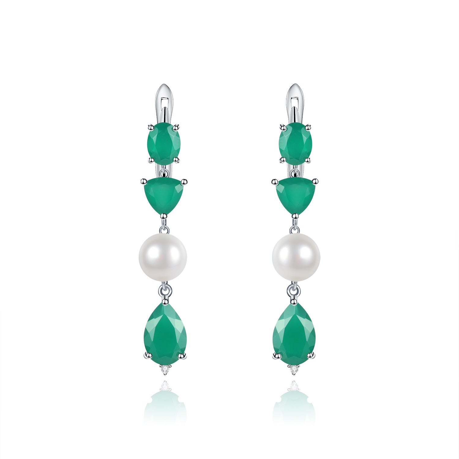 Luxurious and Unique Natural Pearl Earrings Advanced Sense s925Silver Color Gemstone Green Agate Earrings Drop Earrings