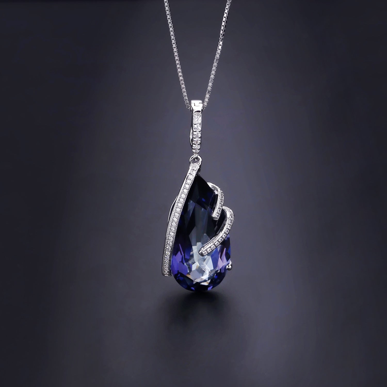 Luxurious Design Gemstone Pure Silver Pendant Necklace with Unique Style s925Silver Inlaid Crystal Necklace Pendant