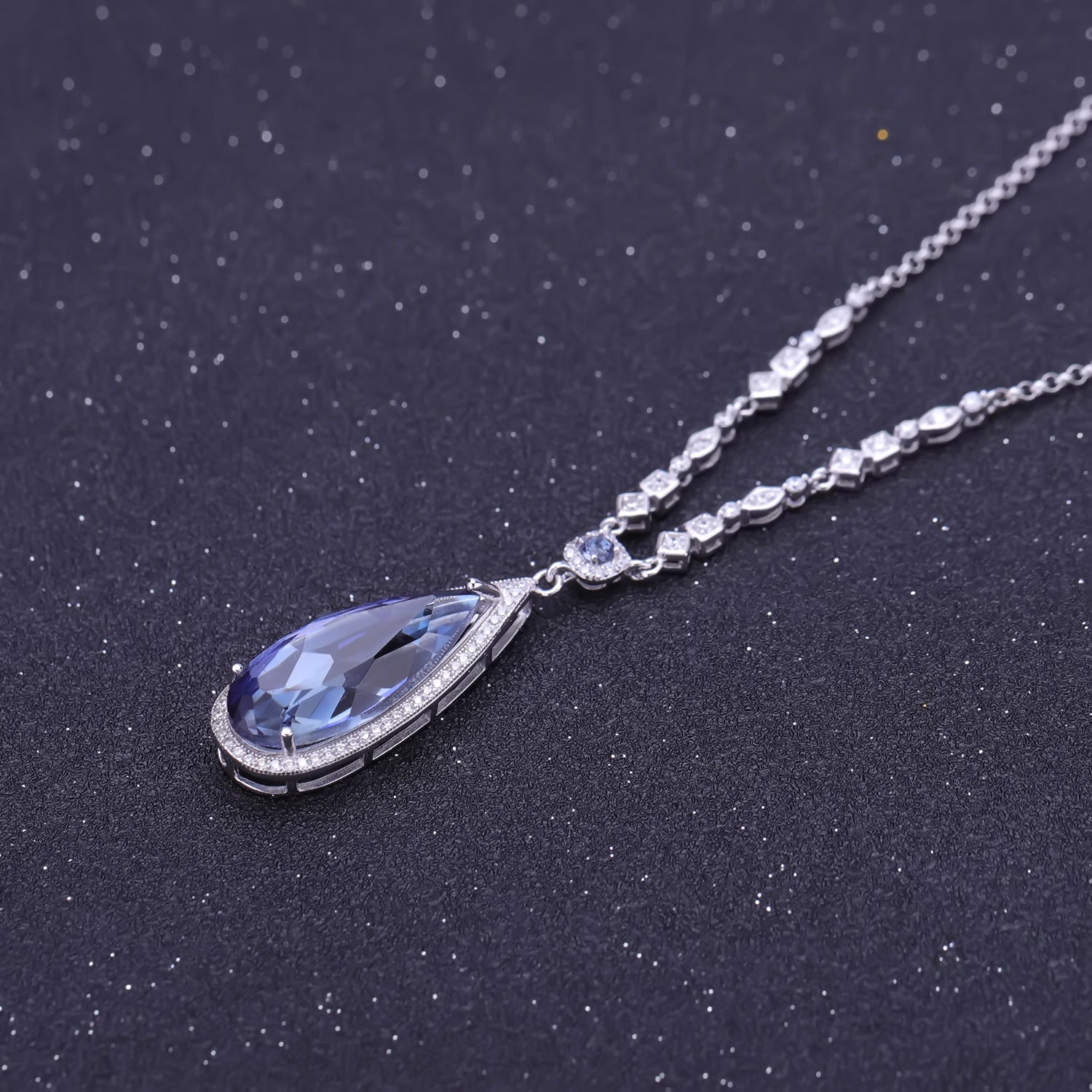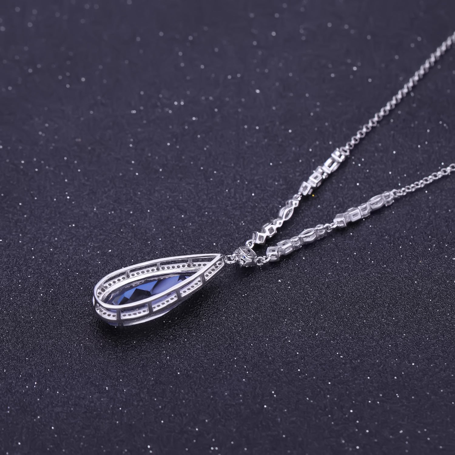 Luxurious Design High-End Inlaid Gemstone Jewelry Accessories Personality925Silver Color Gemstone Necklace Pendant