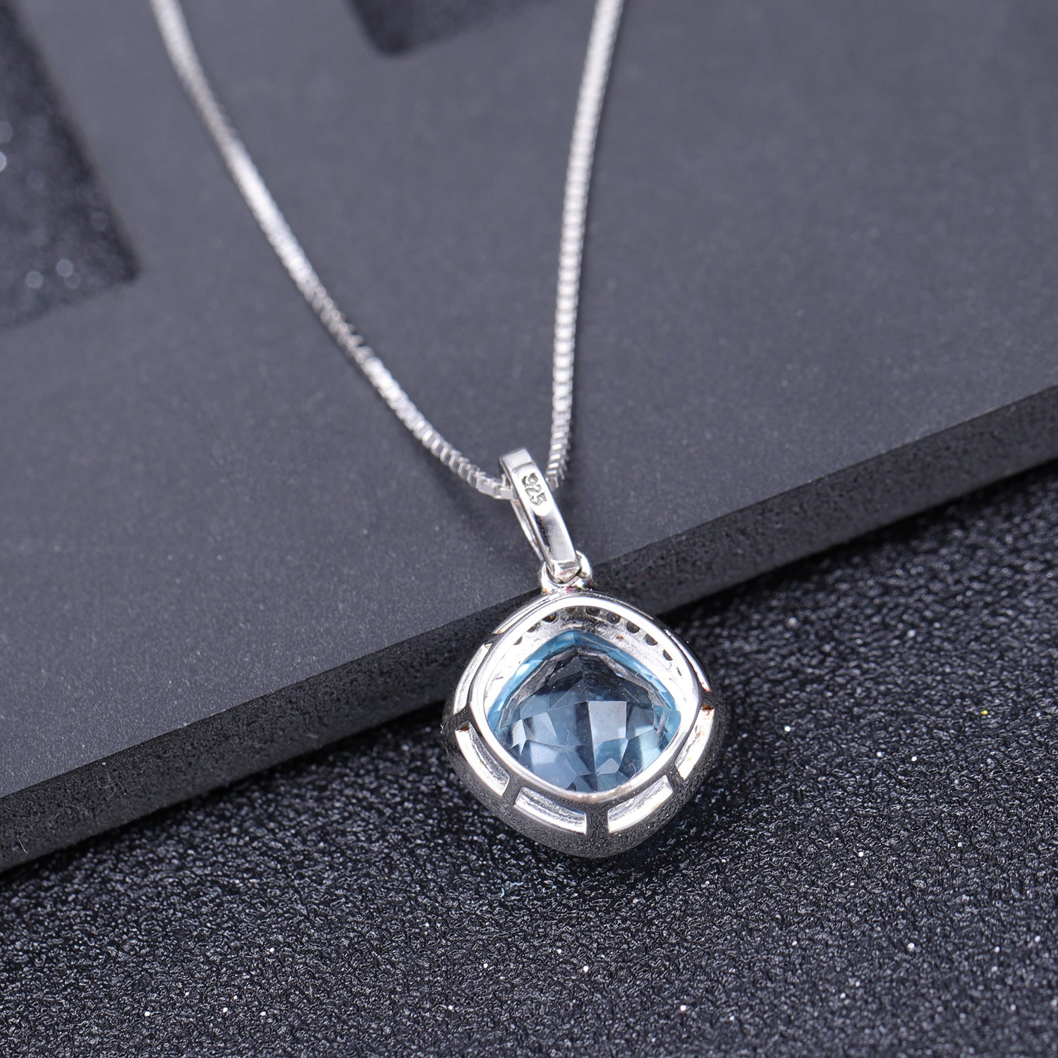 Luxurious Minimalist Fashion Natural Gemstone Necklace Pendant925Silver Inlaid Sky Blue Topaz Gemstone Necklace Pendant