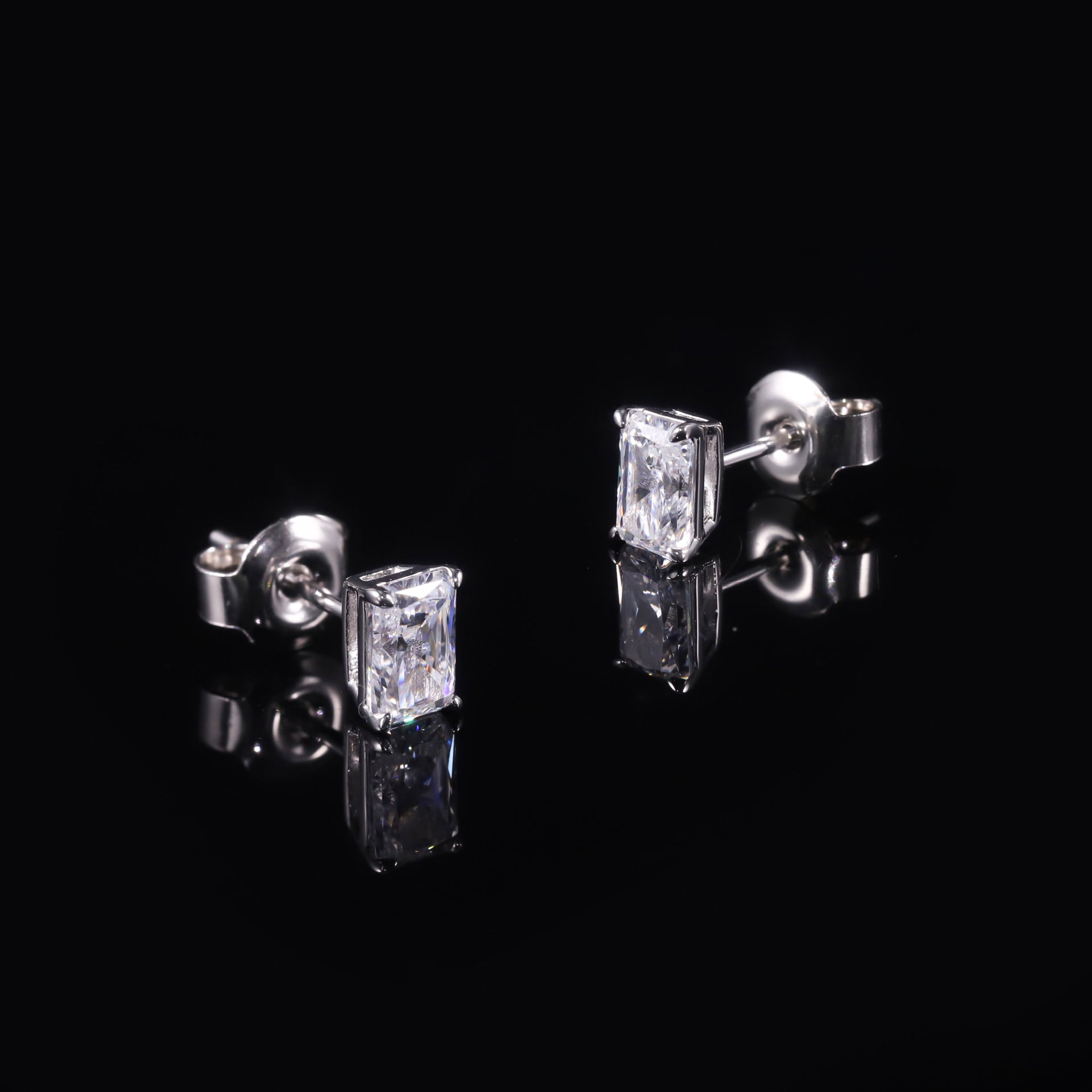 Minimalist style9/10/14/18k Gold earrings with four prongs0.8Carat Moissanite Cushion Earrings Platinum Studs Simple