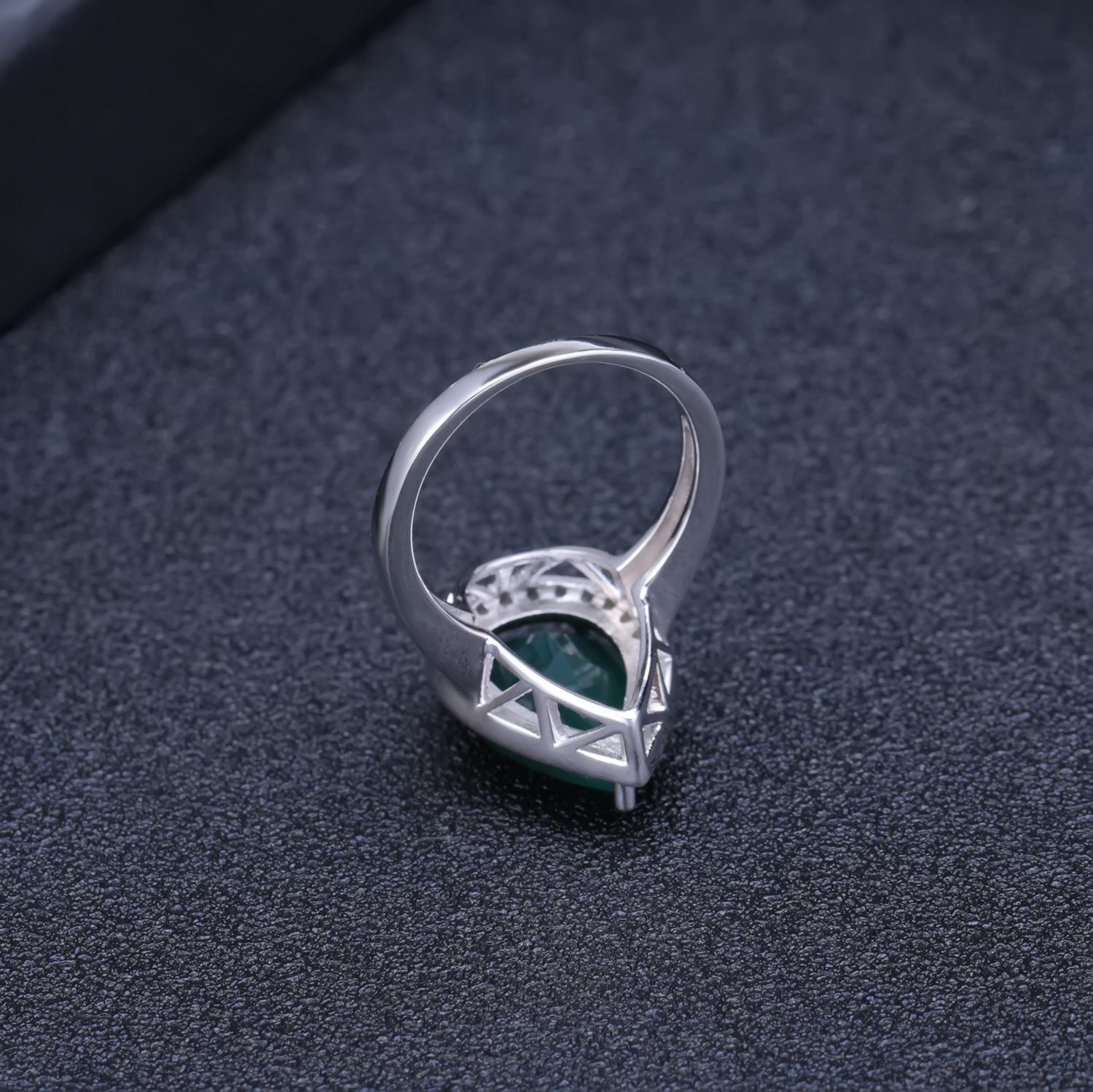 Natural Gemstone Ring for Women Fashionable Luxurious Large Gemstone s925Sterling Silver Inlaid Natural Green Agate Ring