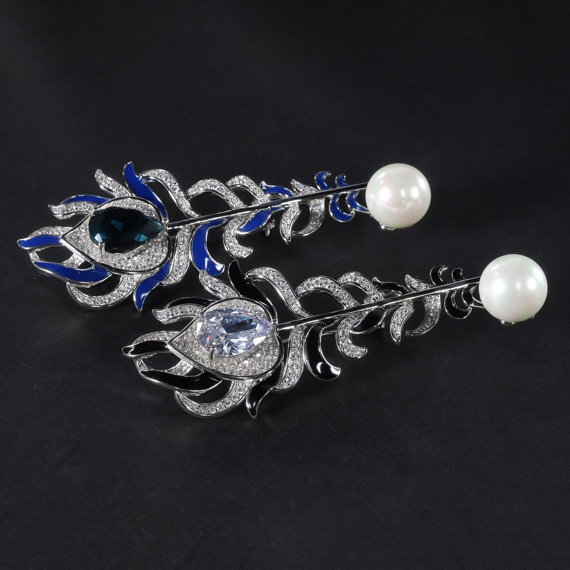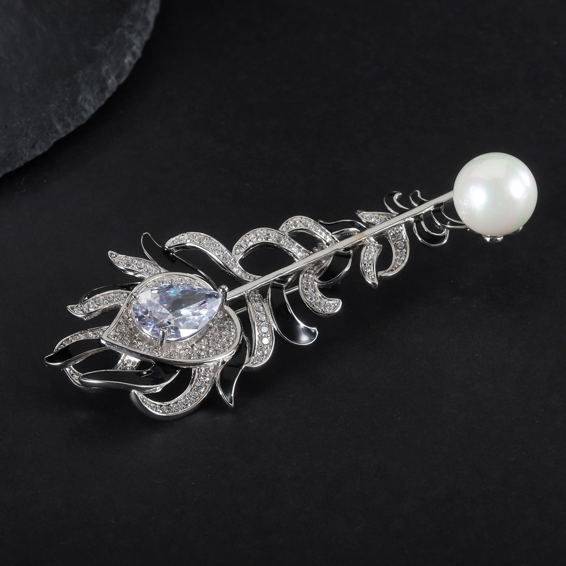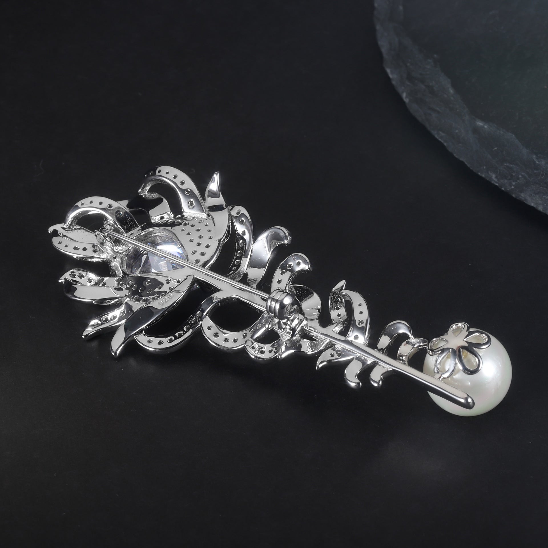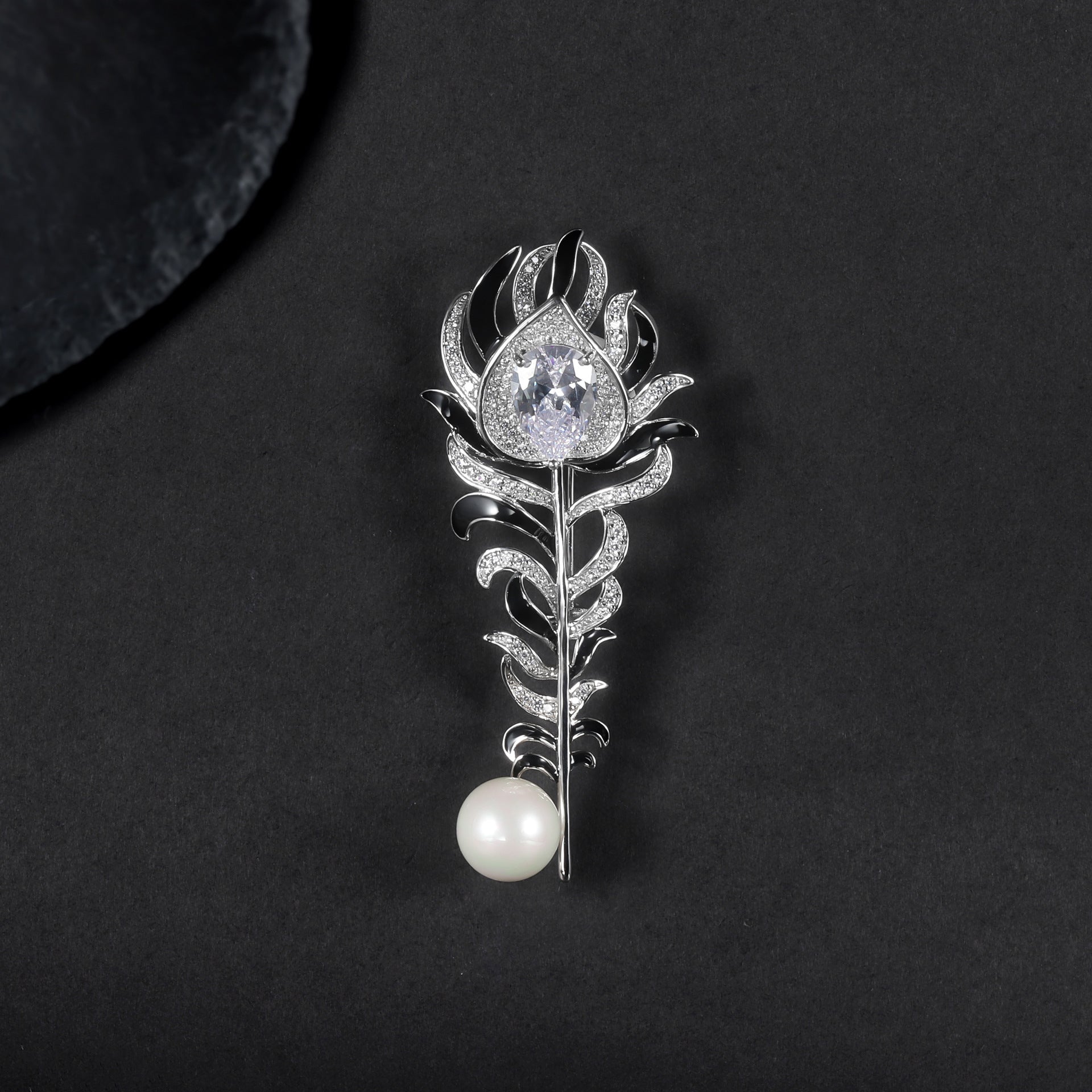 New Style Unique High-End Designer Brooch Vintage Luxury S925Silver Inlaid Gemstone Shell Pearl Brooch