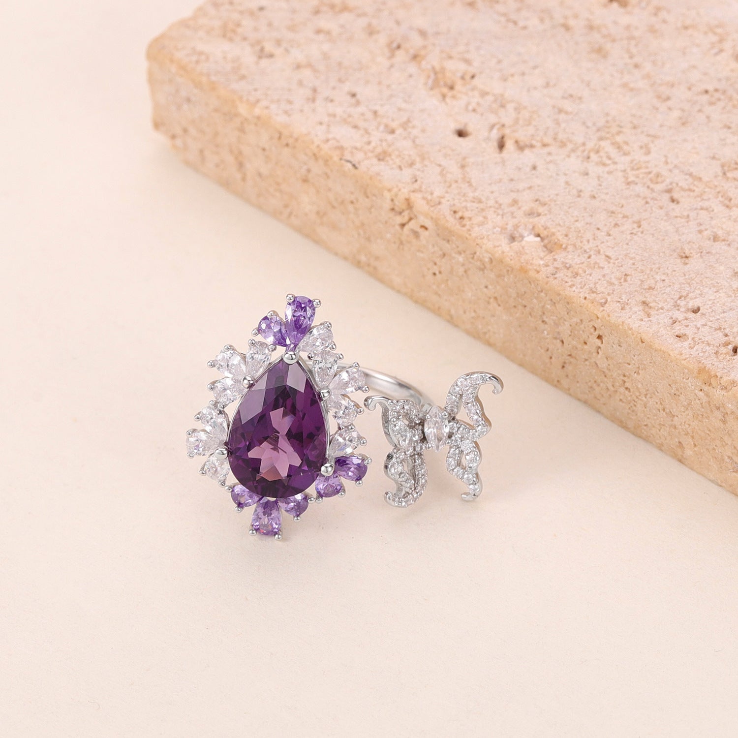 Original Design Natural Topaz Stone Open Ring s925Silver Inlaid Pink Crystal Large Main Stone Cross-border Gorgeous Ring for Women