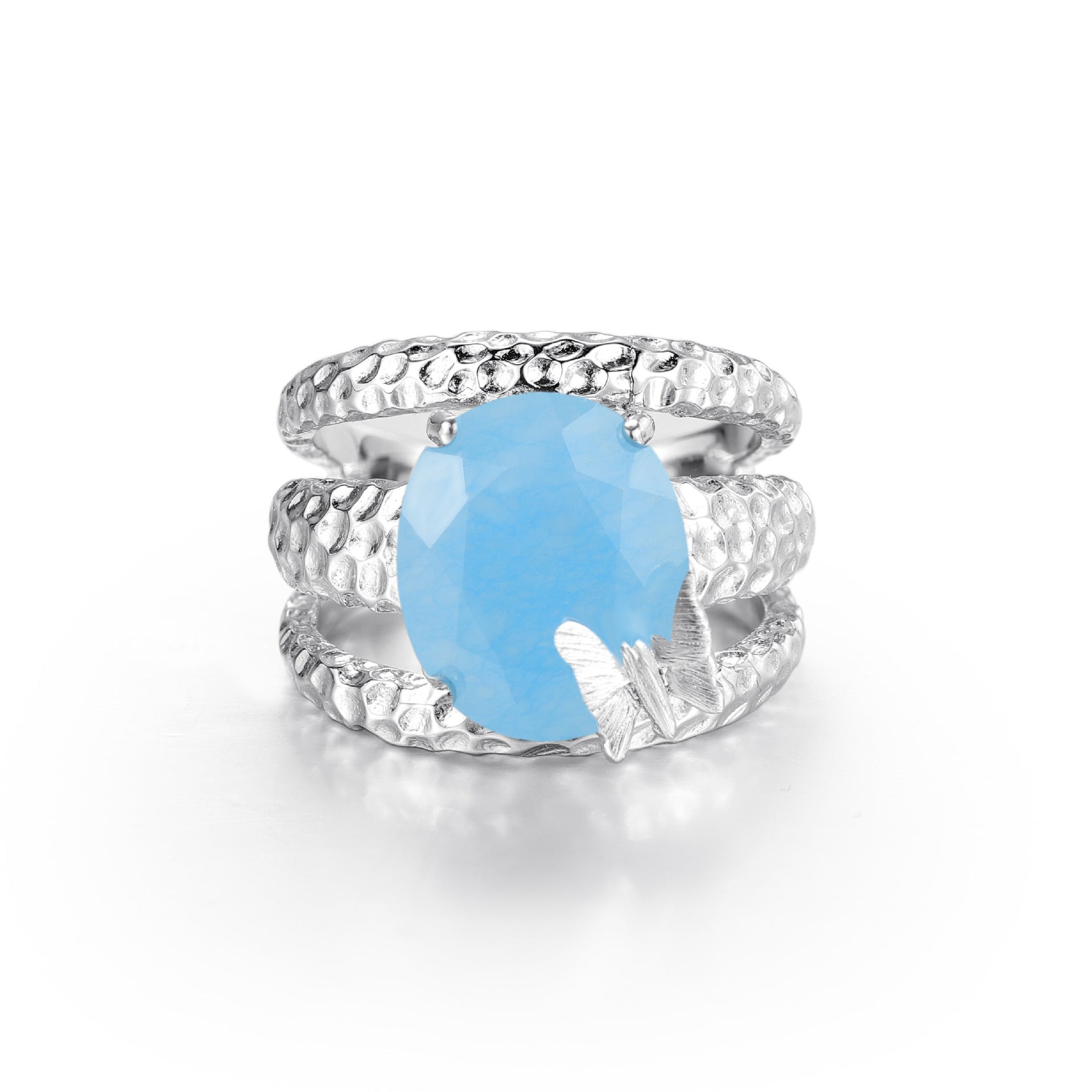Red Agate Aquamarine Chalcedony Crystal Ring S925Sterling Silver Light Luxury Ring High-end Design Gemstone Jewelry for Men and Women