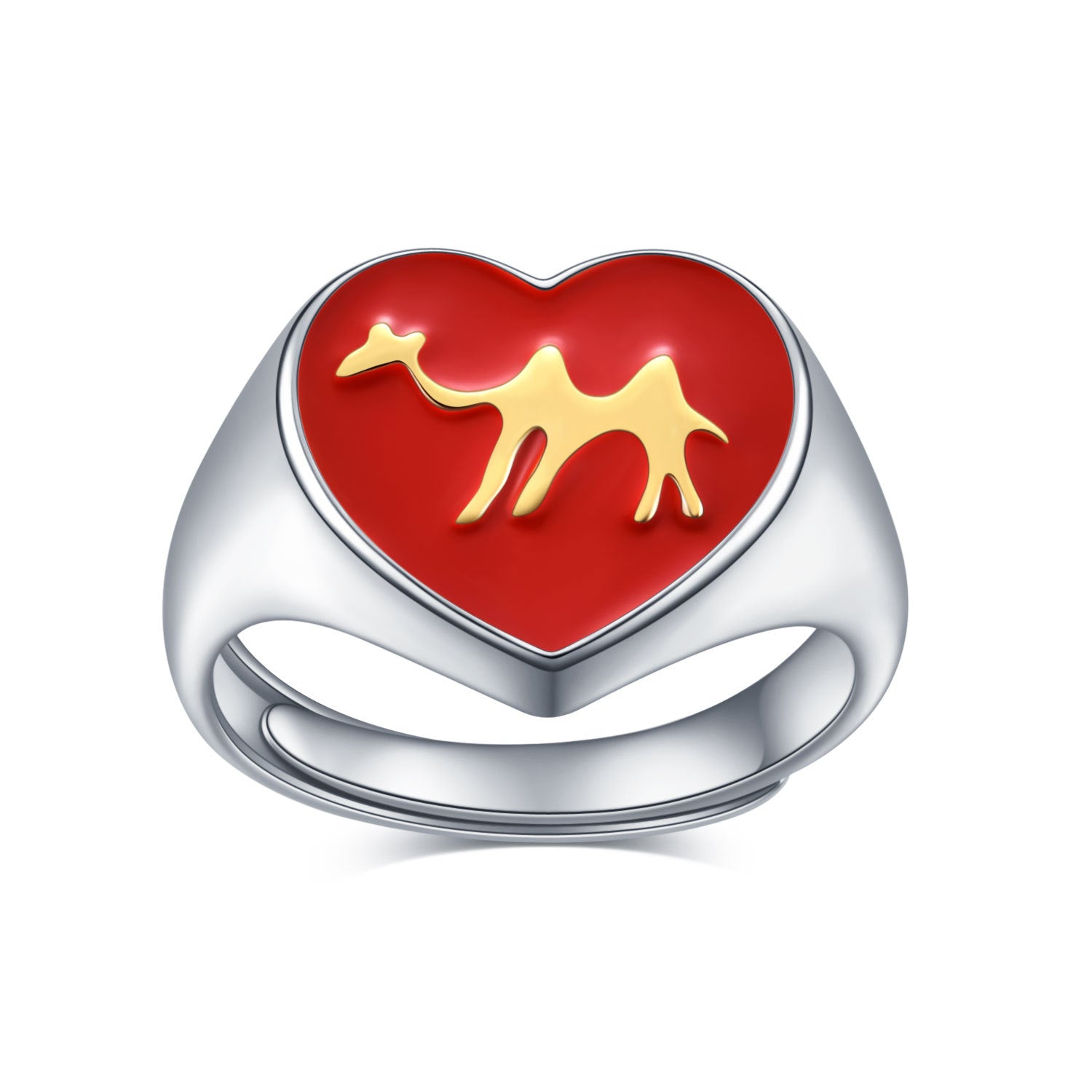 Red Enamel Camel Ring Earrings Bracelet with Safety Pin s925Sterling Silver Unique Personality Three-Piece Jewelry Set Heart Shape