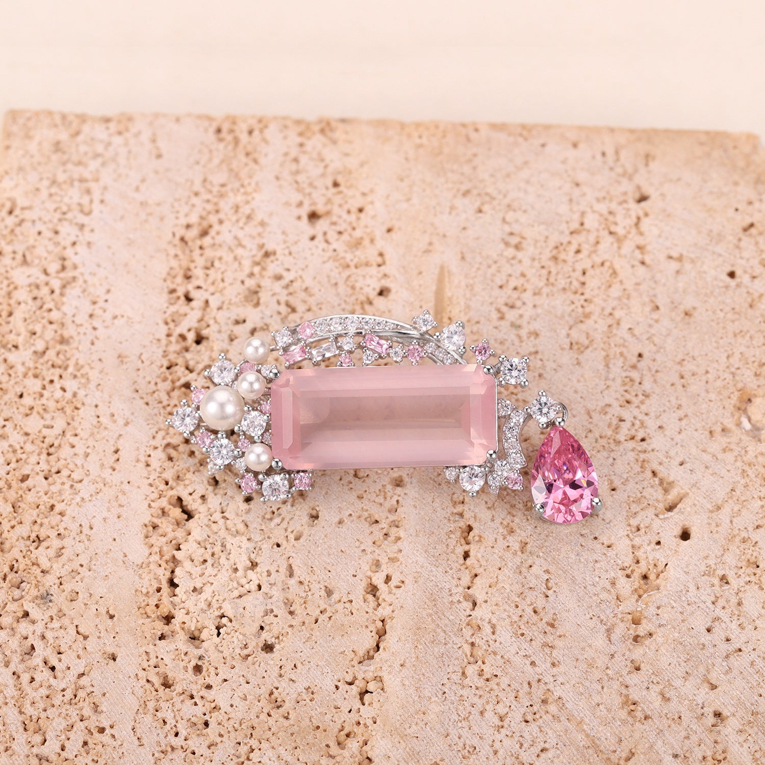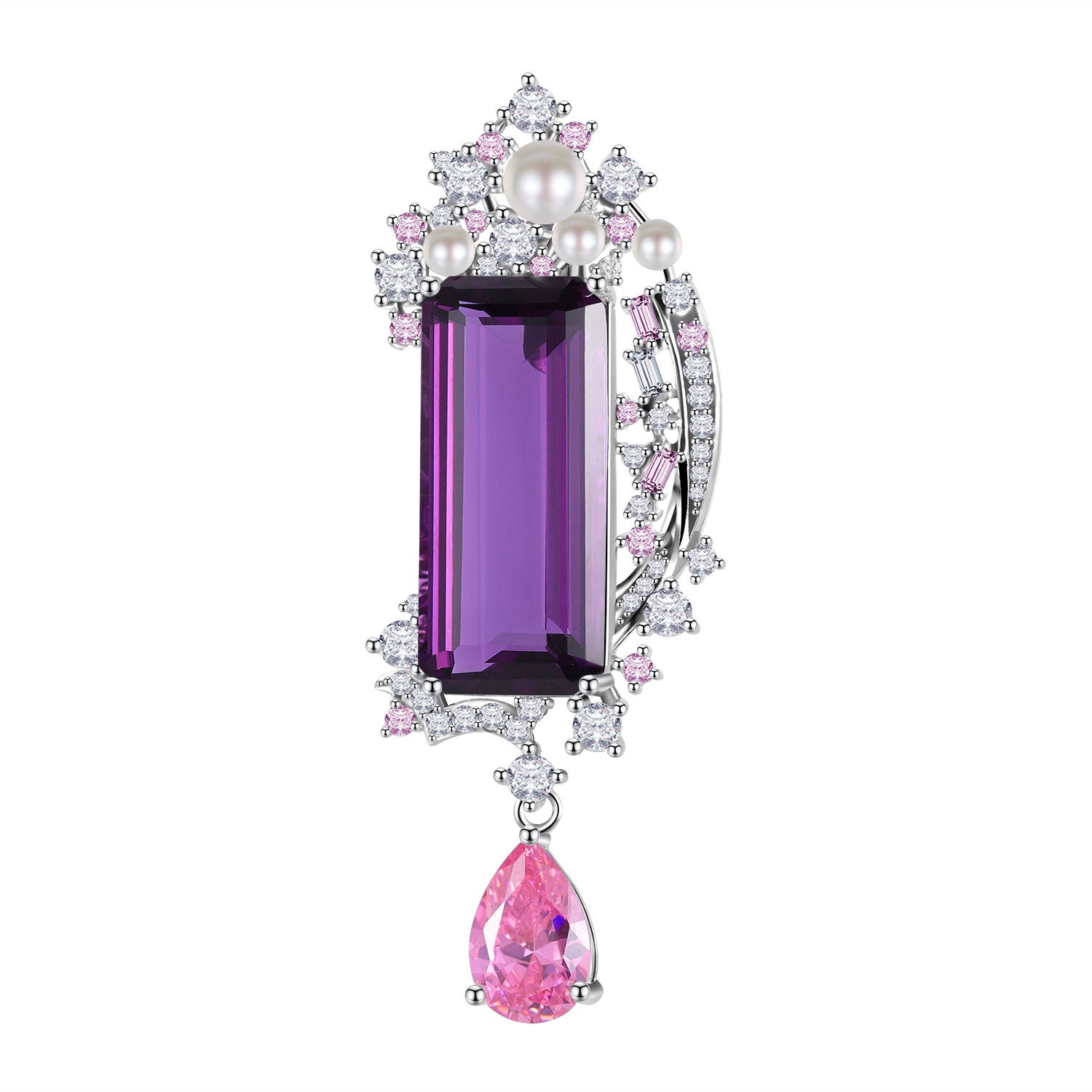 Russian Luxurious High-End Jewelry Brooch Pendant Dual-Use Natural Purple Pink Crystal Necklace Large Gemstone Pearl Brooch