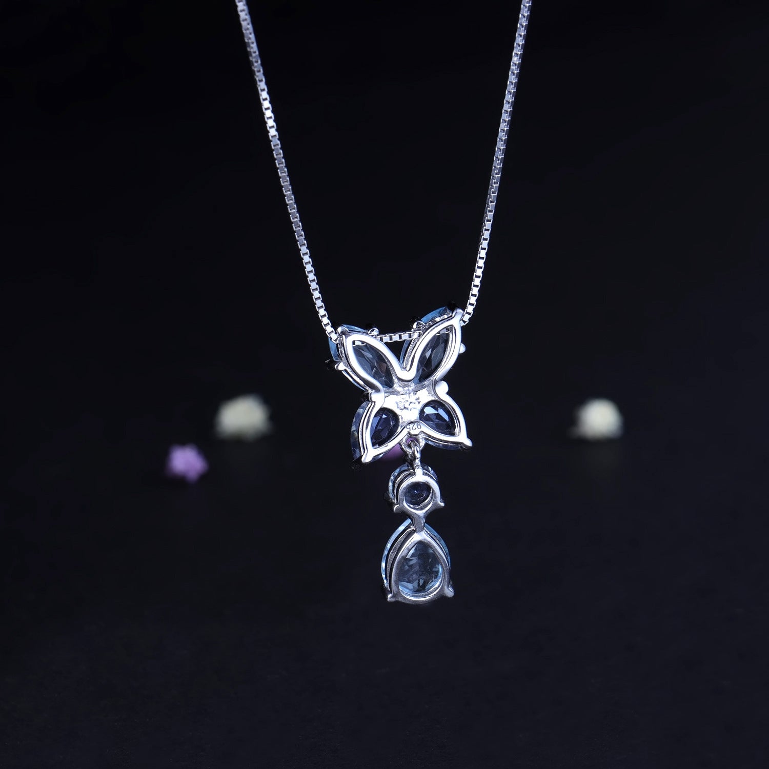 s925Silver Natural Topaz Necklace Fashionable Luxurious High-End Pure Silver Inlaid Natural Gemstone Necklace Pendant