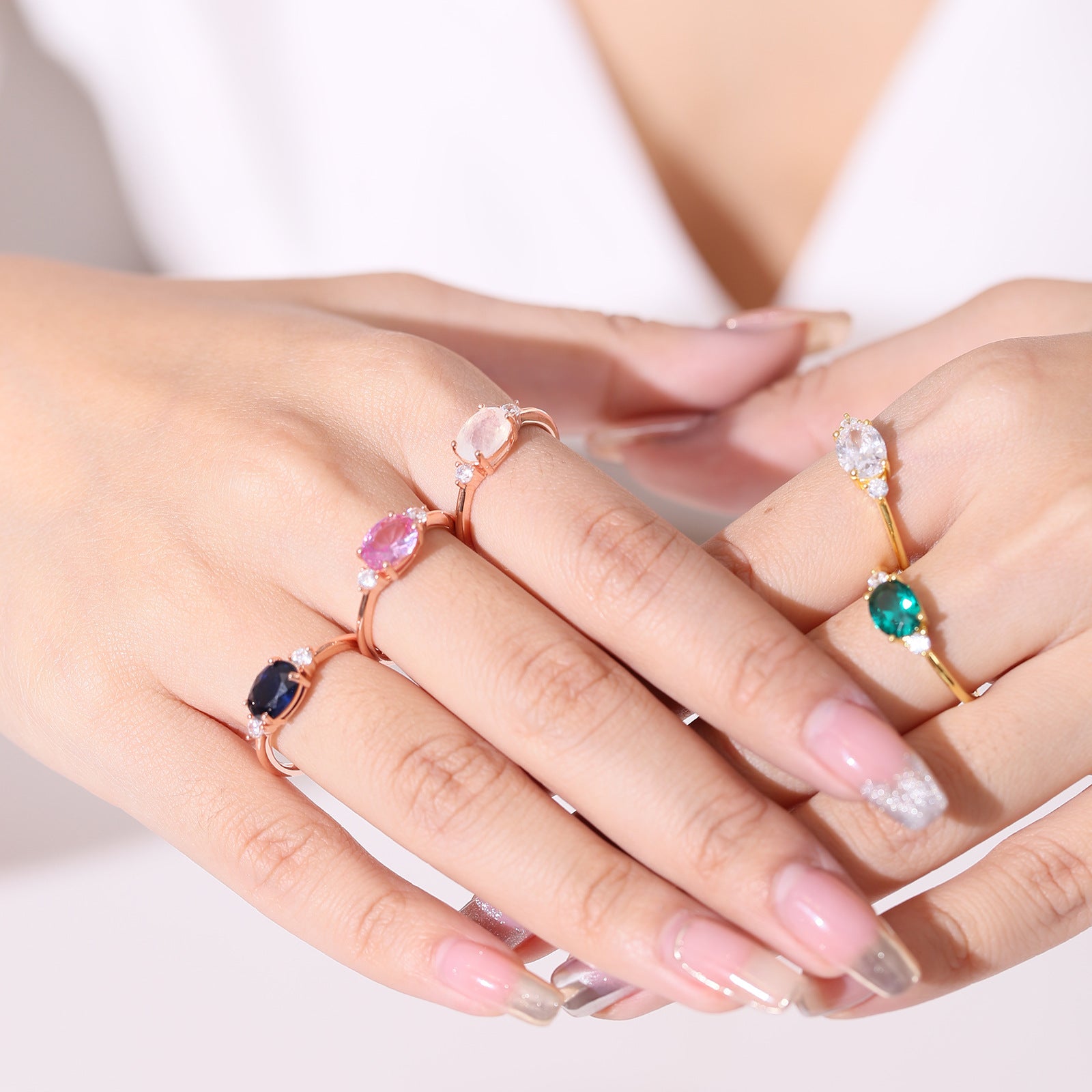 S925Sterling Silver Inlaid Blue Gemstone Ring Fashionable Classic Light Luxury6*8mm Gemstone Rose Gold Ring