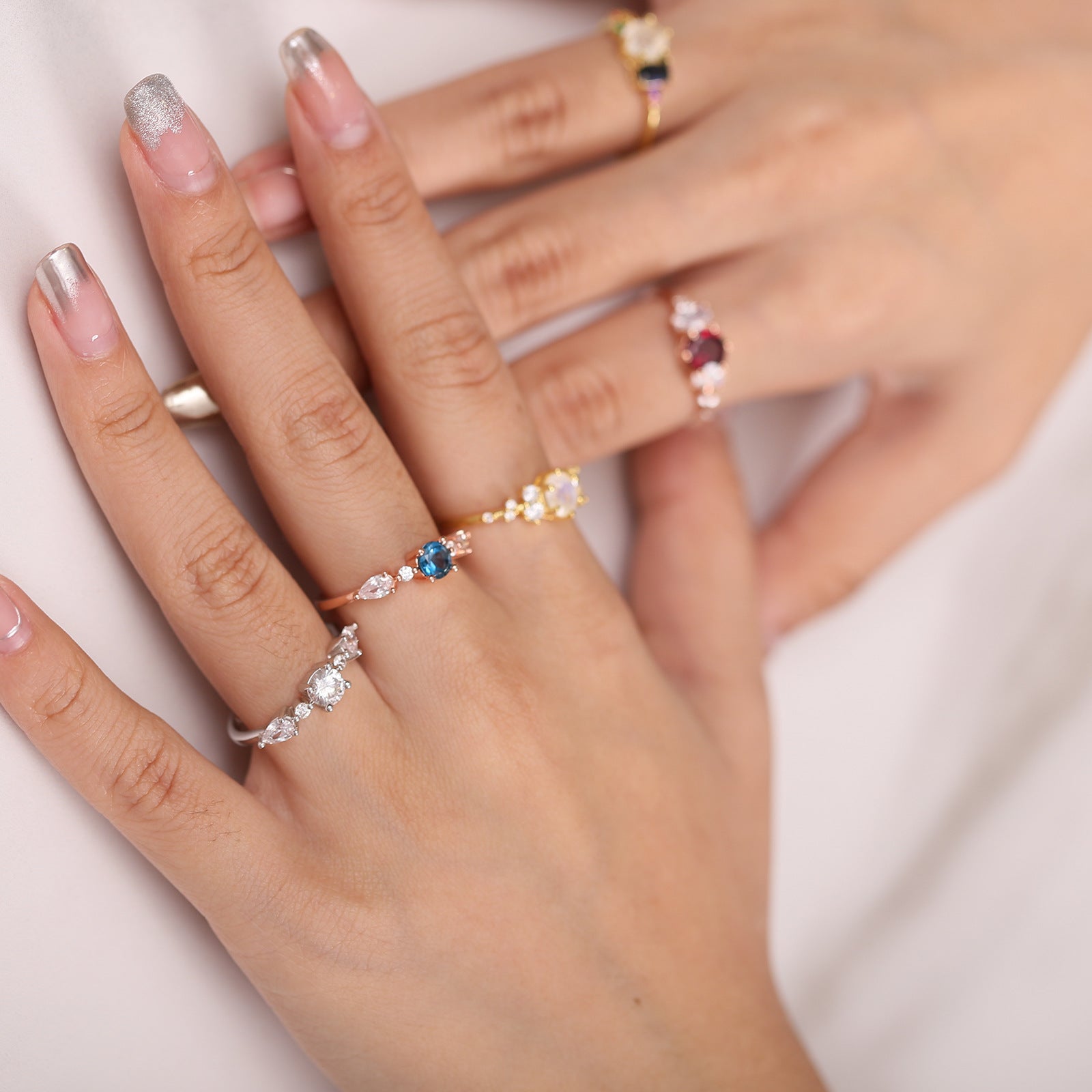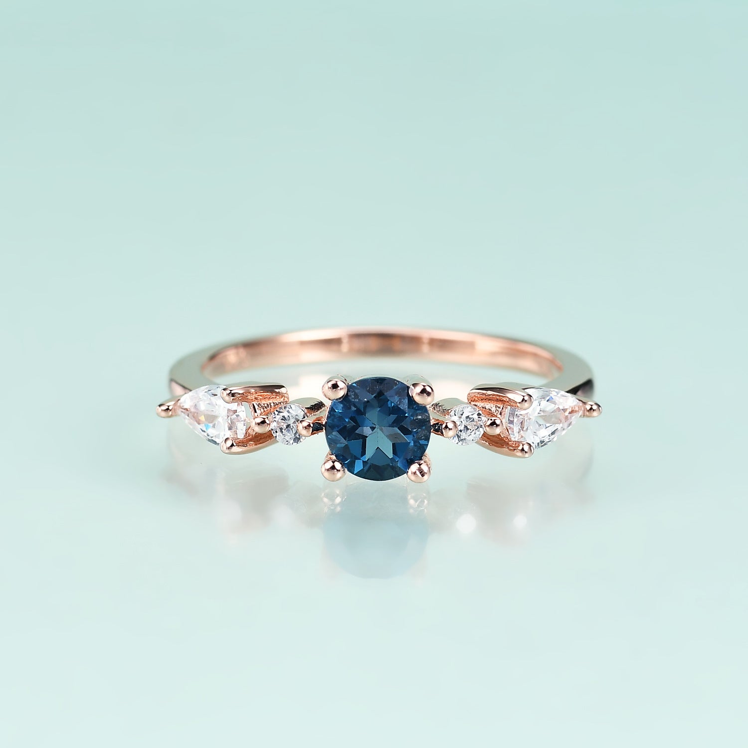 S925Sterling Silver Inlaid Natural London Blue Topaz Ring Fashionable Light Luxury Simple Elegant Gemstone Ring