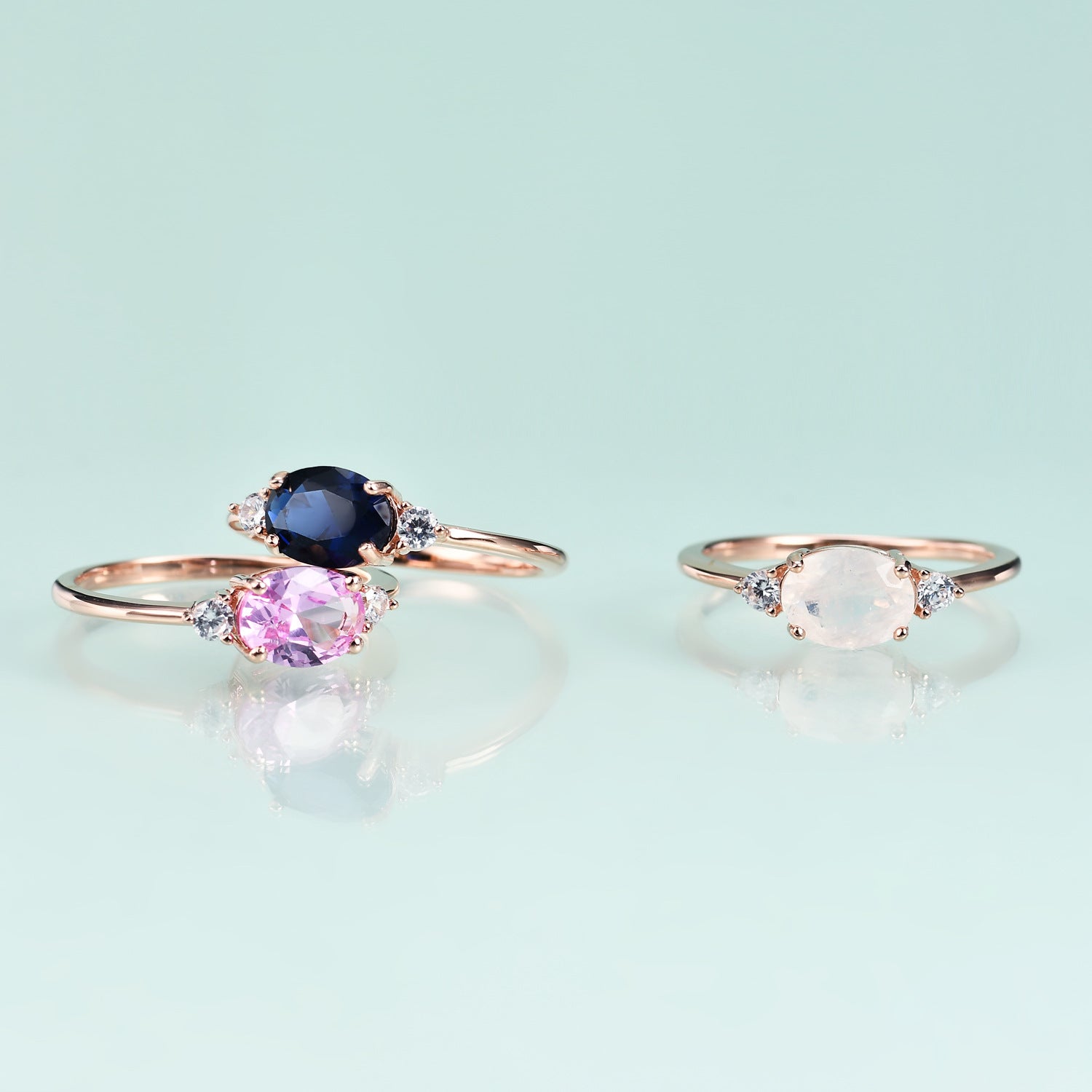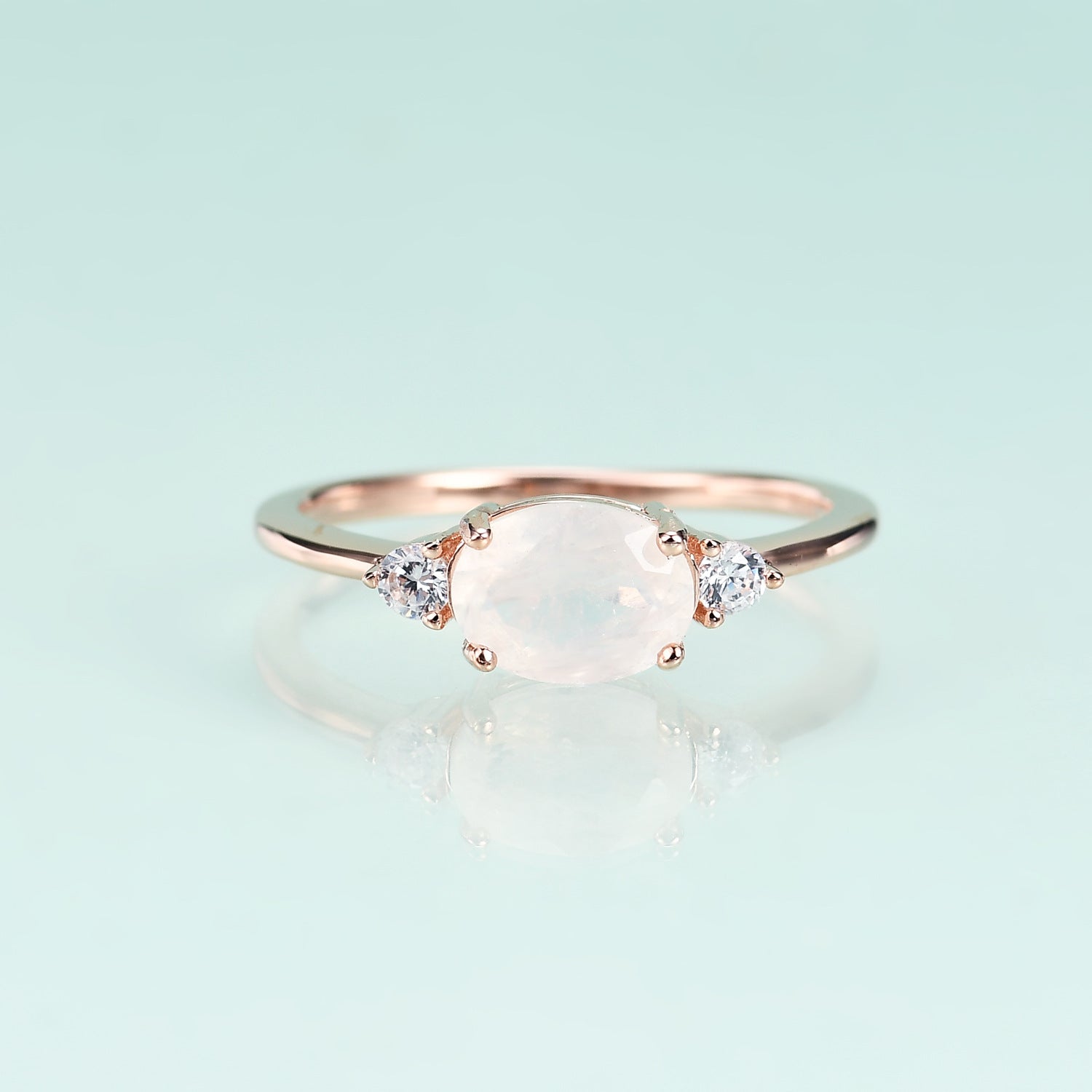 S925Sterling Silver Inlaid Natural Moonstone Ring Fashionable Classic Light Luxury6*8mm Gemstone Rose Gold Ring