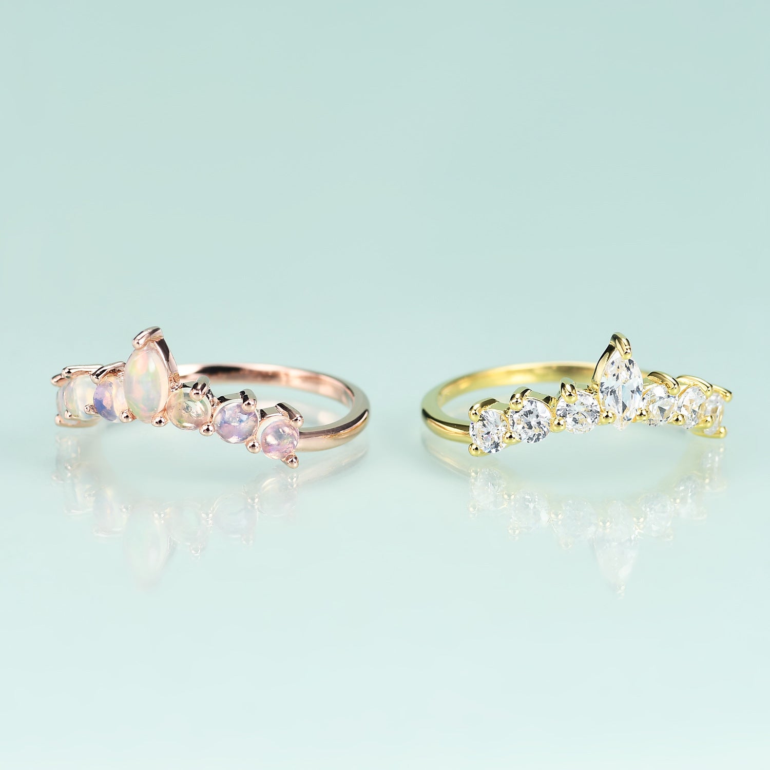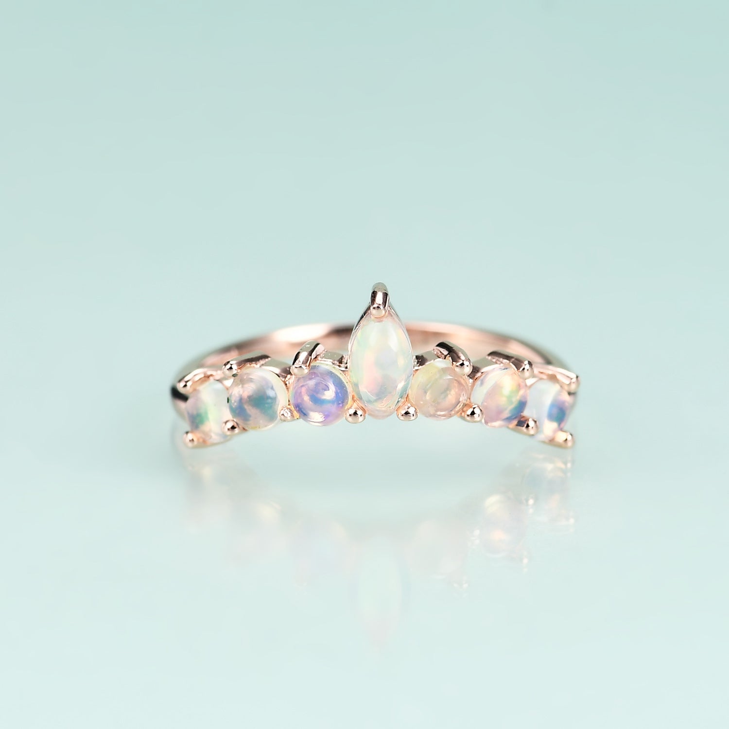 S925Sterling Silver Inlaid Natural Opal Ring Fashionable, Simple, and Luxurious V Rose Gold Gemstone Ring Set