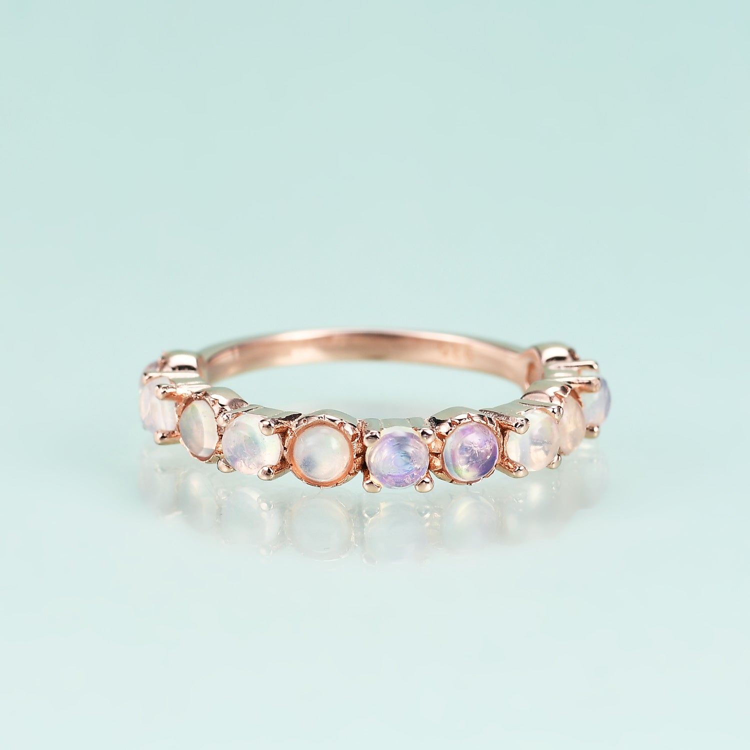 S925Sterling Silver Inlaid Natural Opal Ring Set Light Luxury Fashionable Personality Elegant Simple Rose Gold Gemstone Ring
