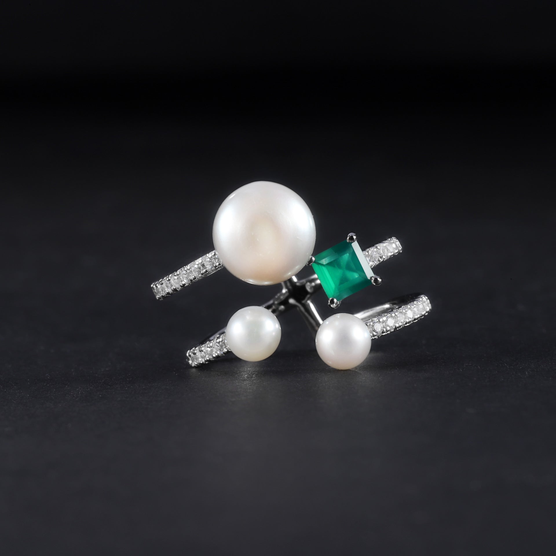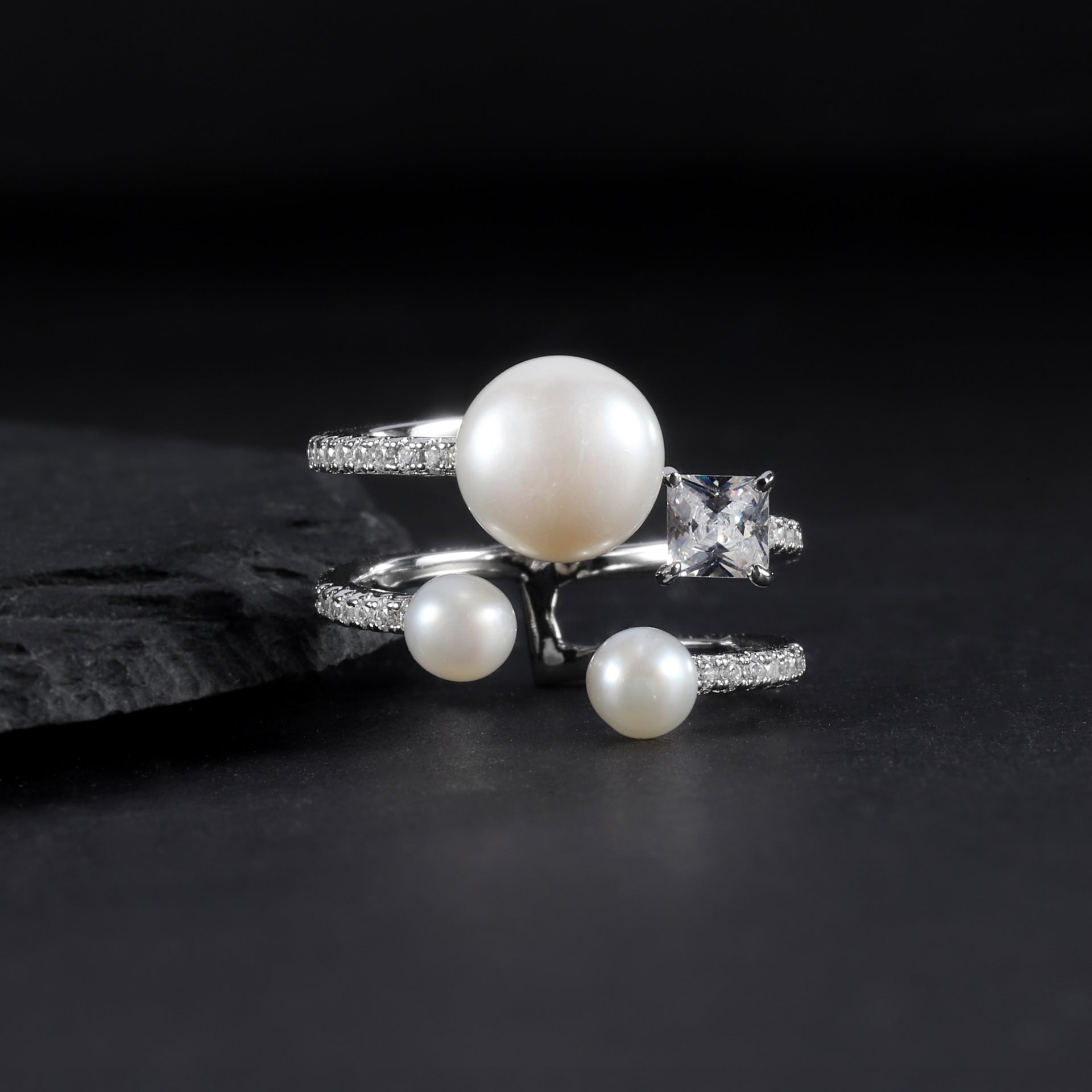 S925Sterling Silver Natural Freshwater Pearl Adjustable Open Ring for Women Fashionable and Elegant Light Luxury Gemstone Ring