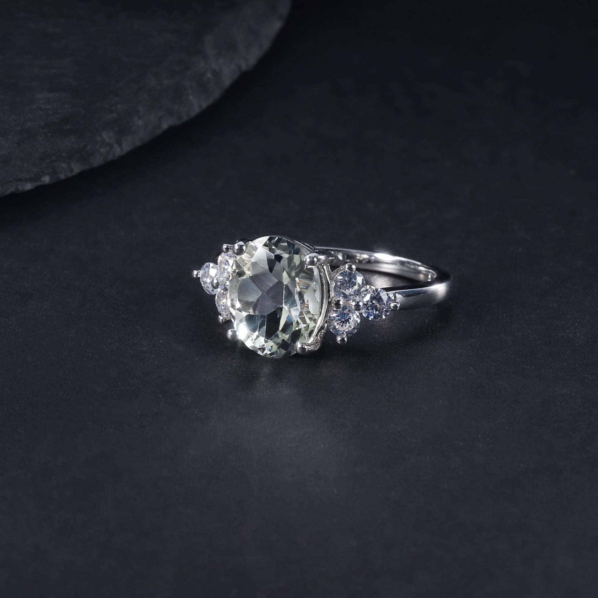 s925Sterling Silver Natural Green Amethyst Ring TikTok Fashionable Elegant Light Luxury Inlaid Natural Gemstone Ring