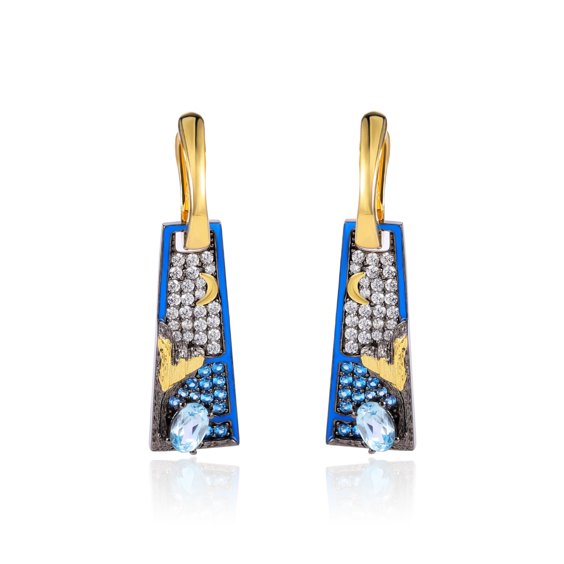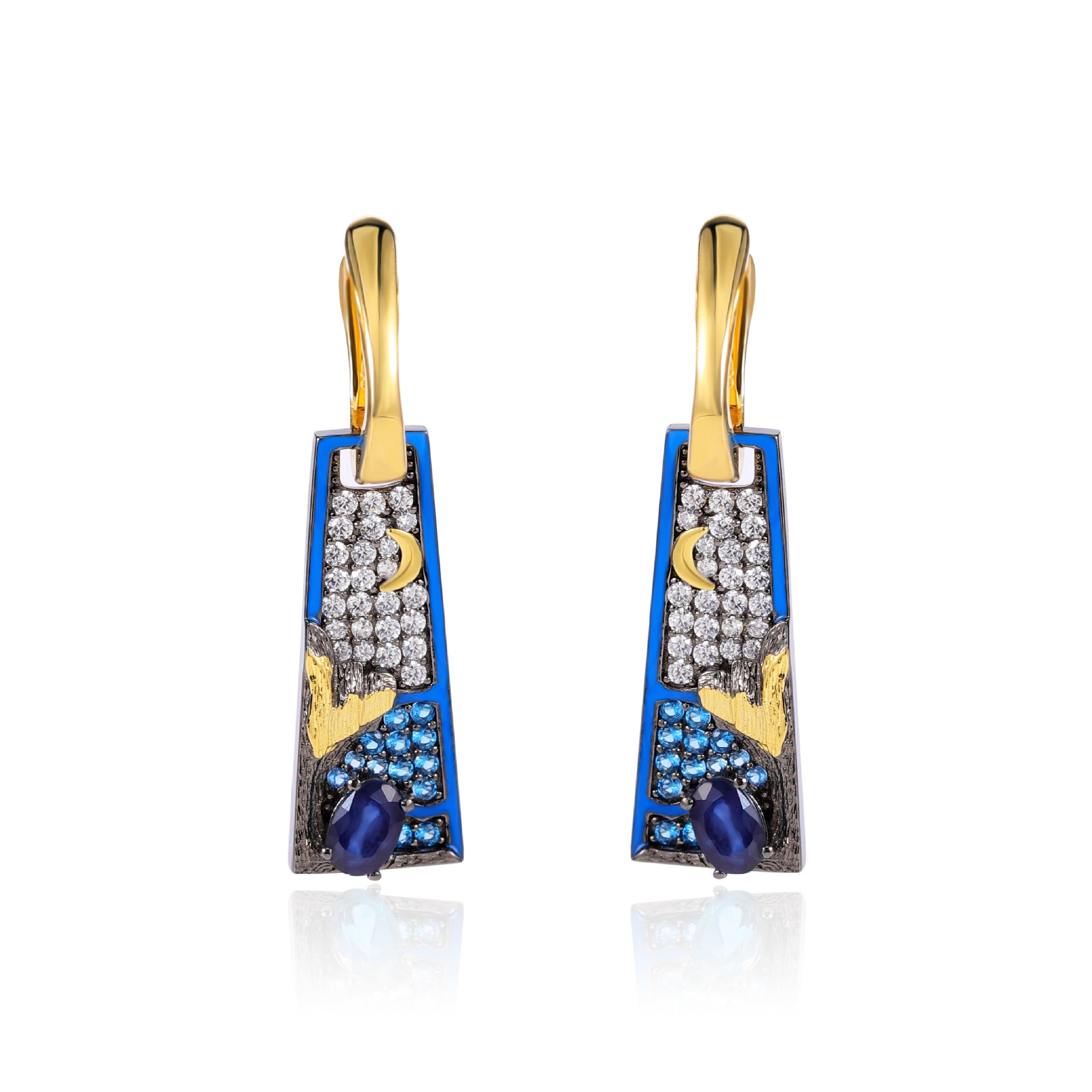 s925Sterling Silver Sapphire Natural Topaz Earrings Niche Square Drop Earrings Original Design Sense Gemstone Earrings for Women