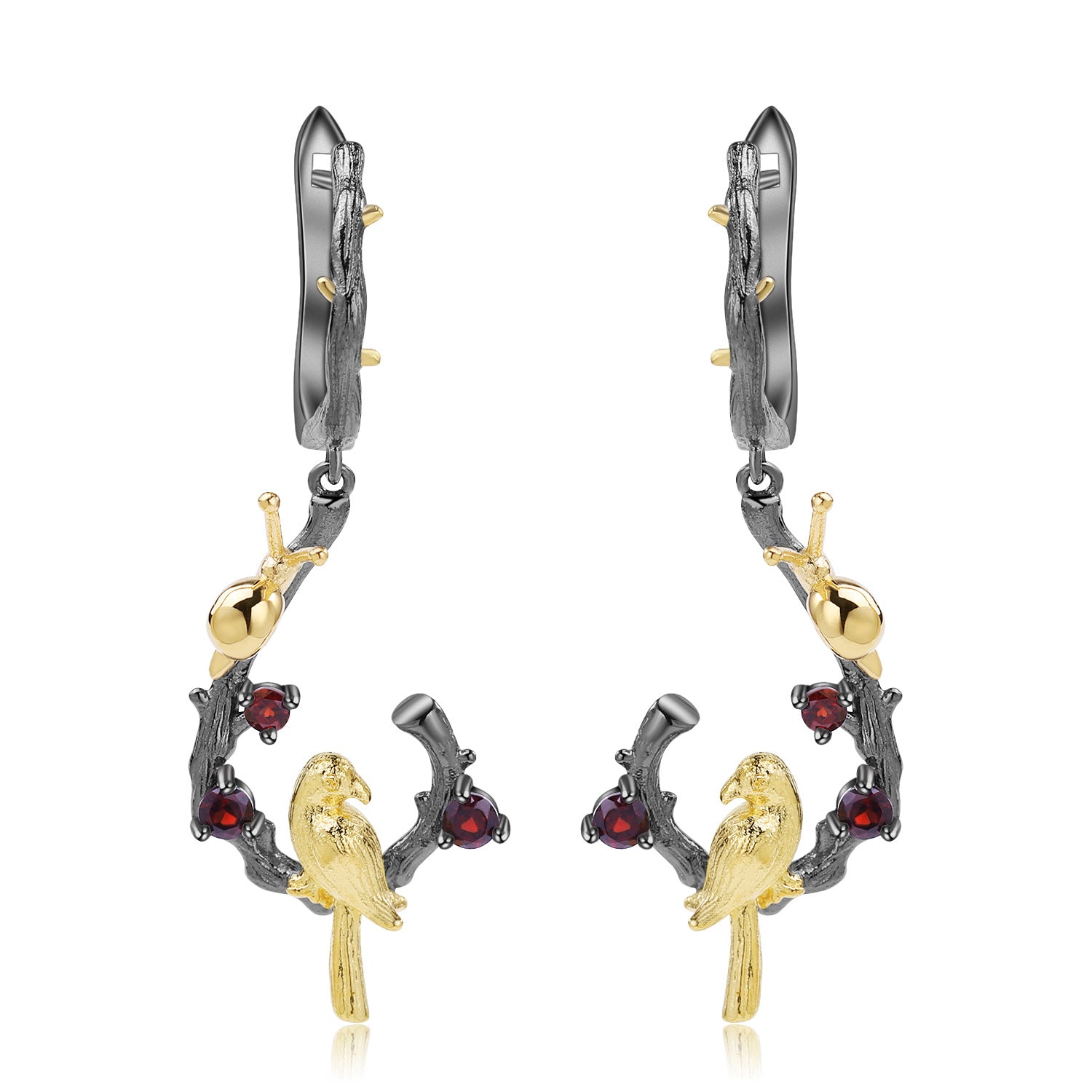 Secret Garden Designer Gemstone Earrings Natural Style Little Bird Design925Silver Natural Gemstone Earrings