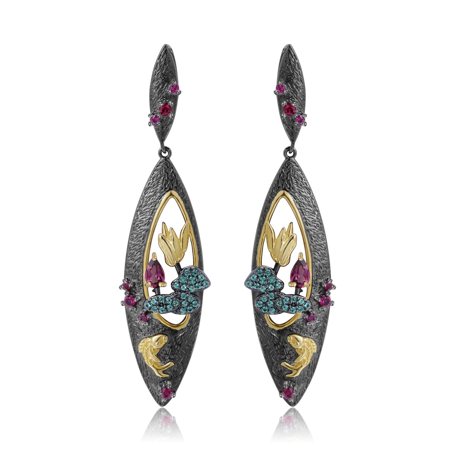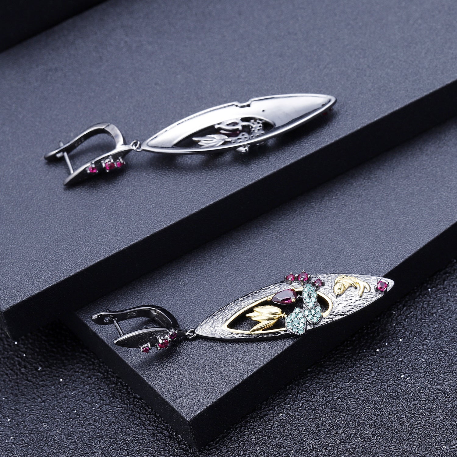 Secret Garden Series Designer Earrings Natural Style s925Sterling Silver Natural Rose Garnet Earrings Chinese Style