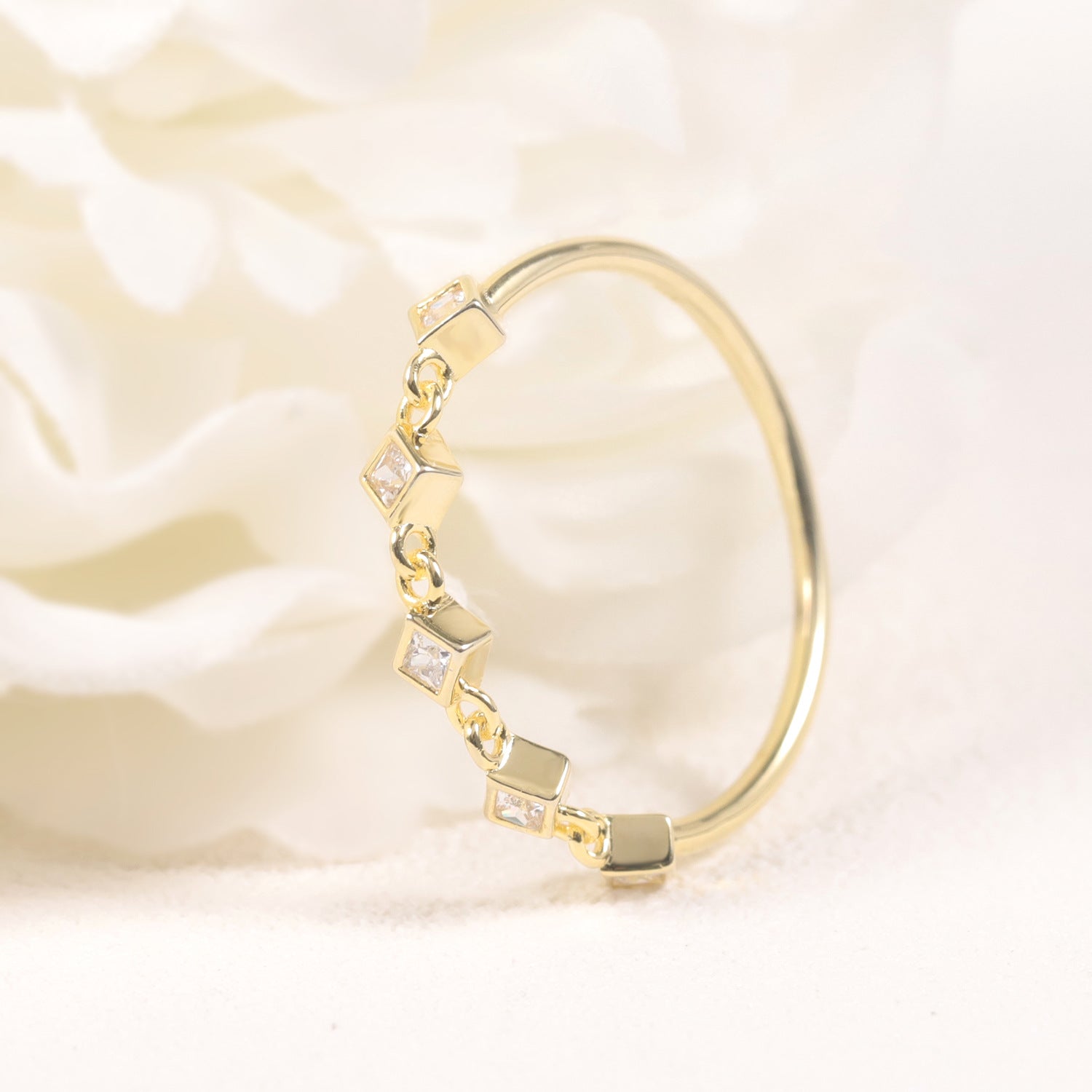 Small Rubik's Cube Niche Design Ring Golden Dawn Series s925Sterling Silver Plated18k Gold Inlaid Moissanite Ring