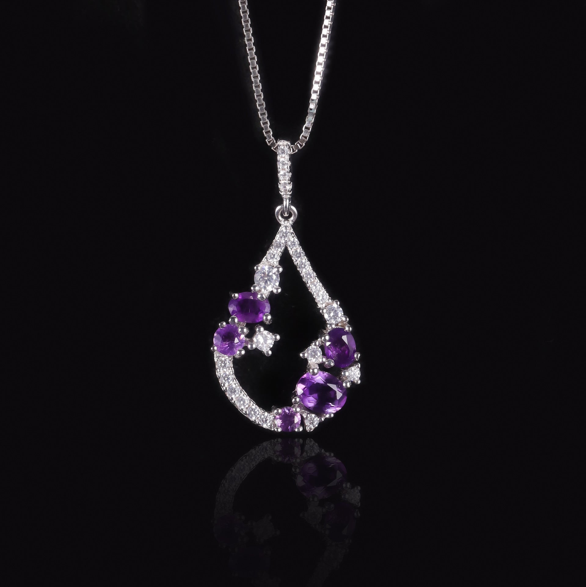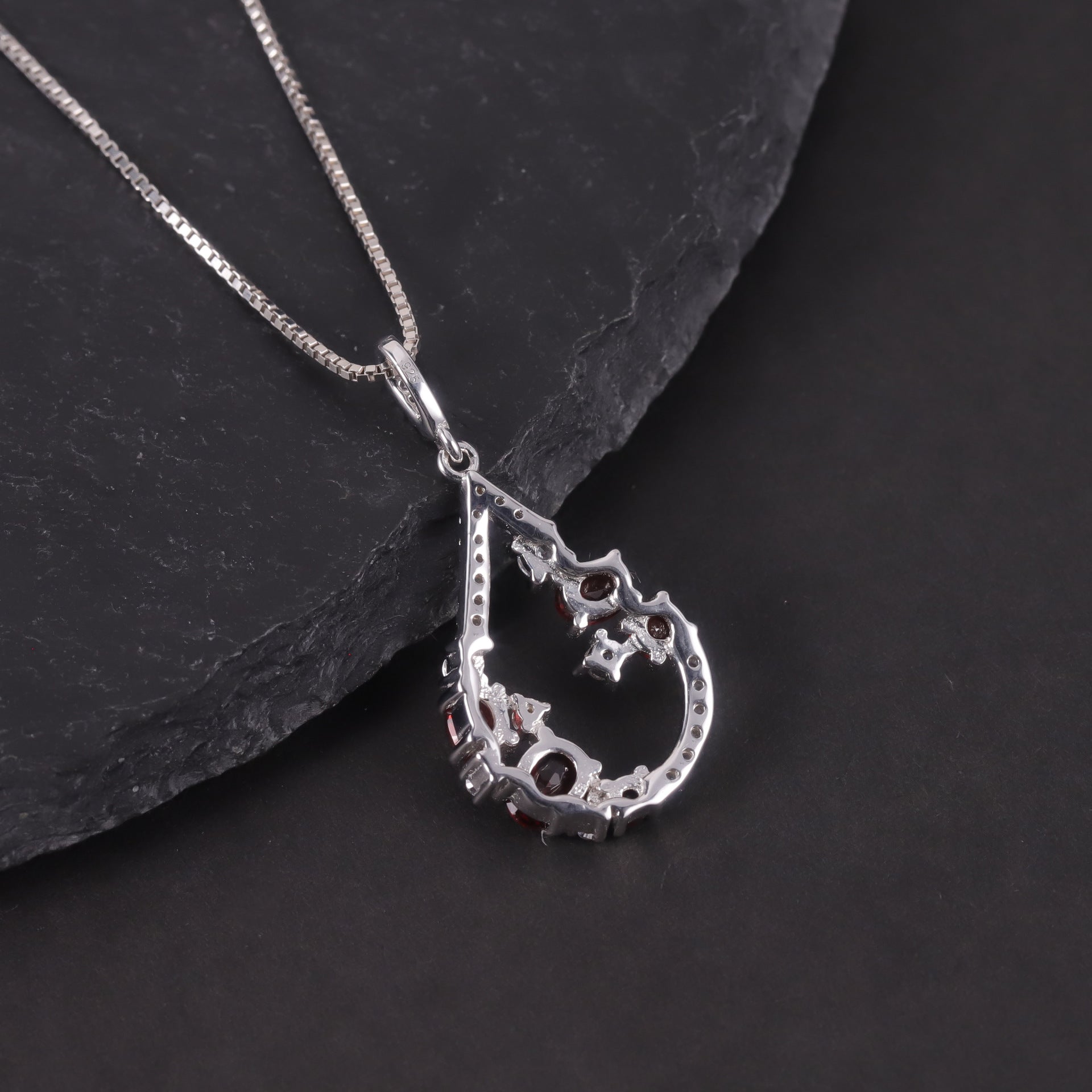 Sweet Style Natural Garnet Necklace s925Sterling Silver Inlaid Translucent Topaz Pendant High-end Jewelry