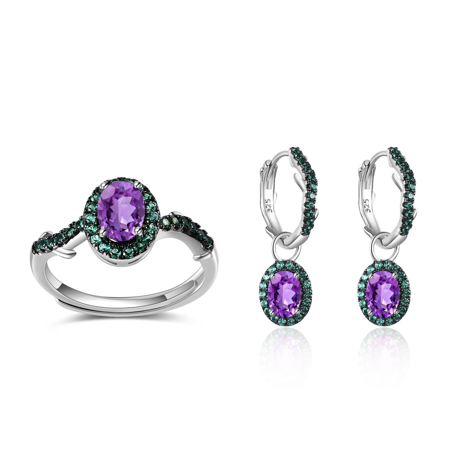Thorn Bud Designer Adjustable Open Ring s925Silver Inlaid Natural Gemstone Amethyst Ring