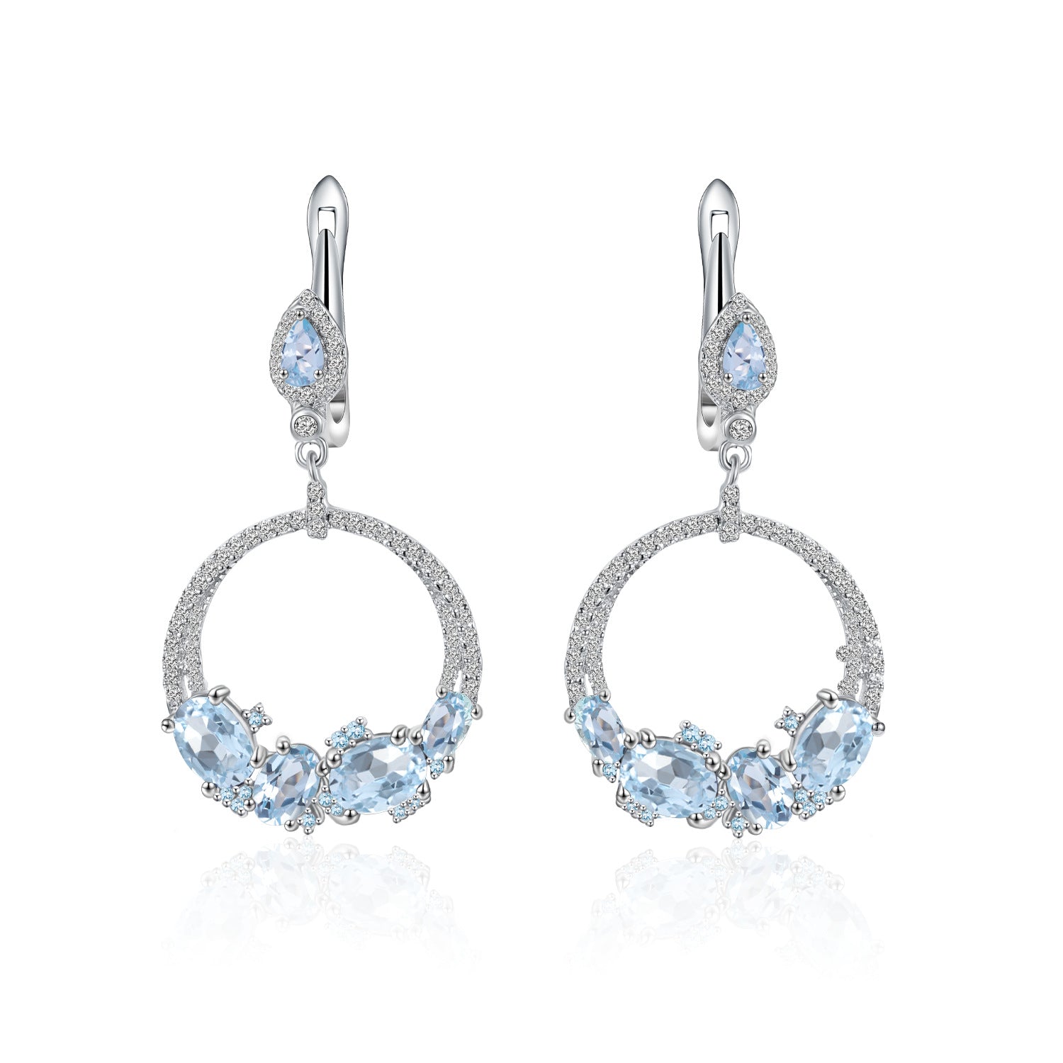 Trendy Round Hoop Earrings with Natural Topaz Stone S925Sterling Silver Gemstone Earrings