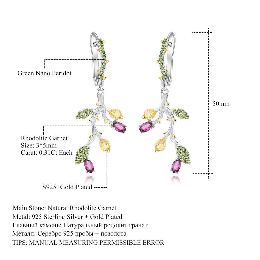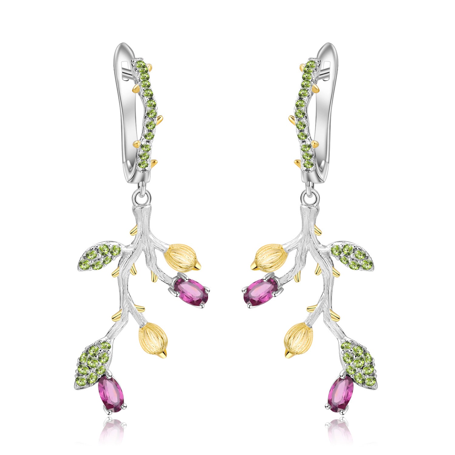 Vintage Natural Style Original Designer Jewelry Earrings Supply925Silver Natural Gemstone Earrings