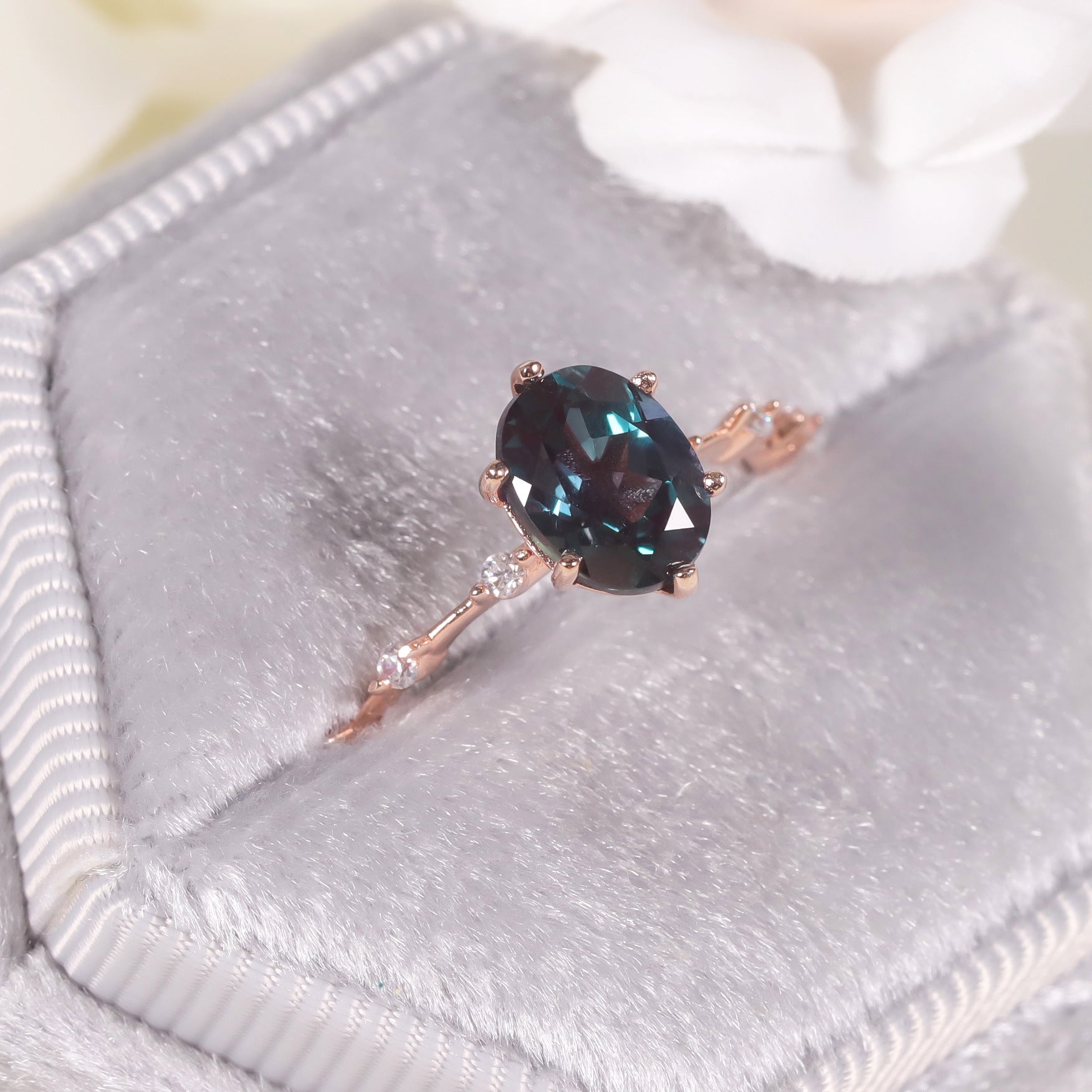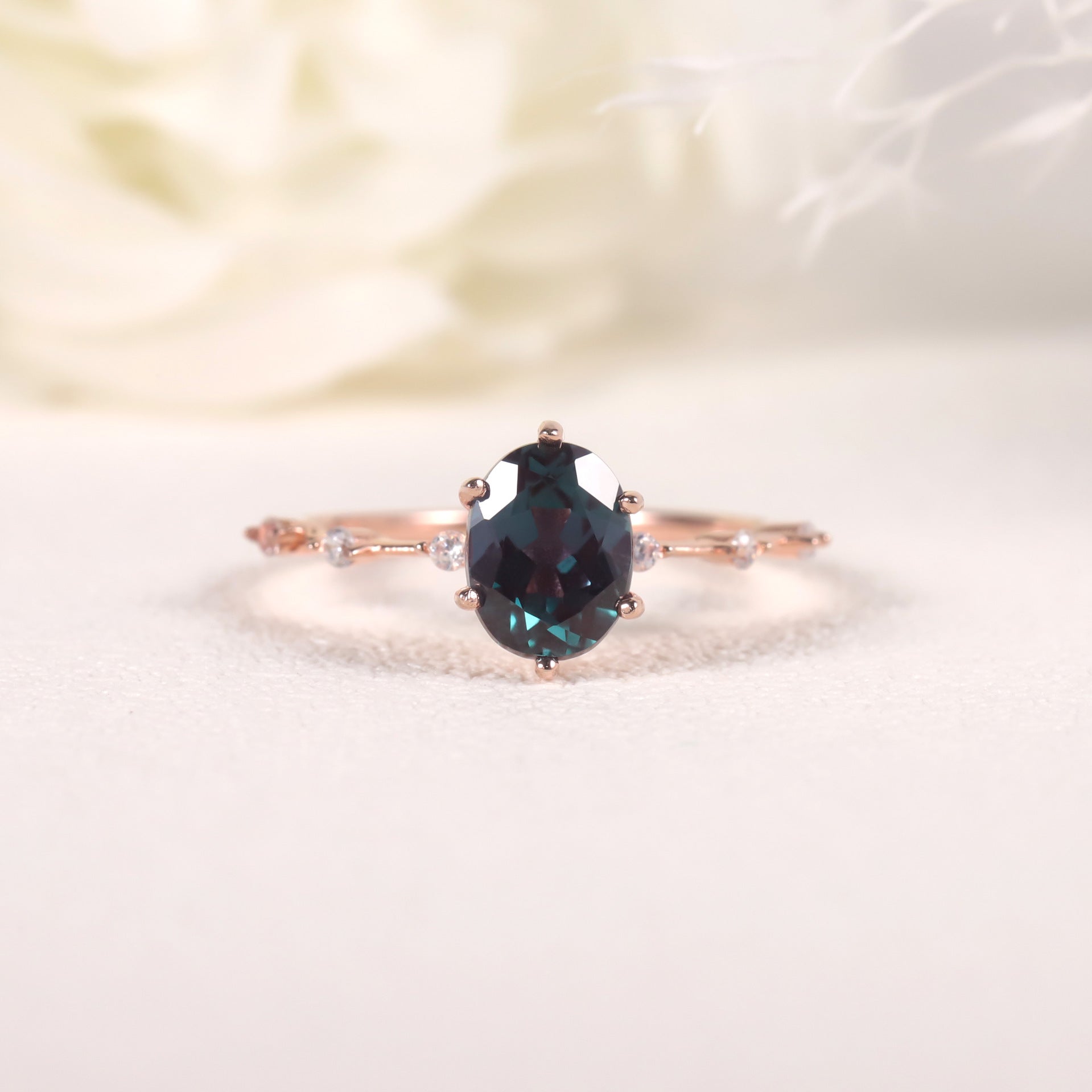 Minimalist Color-Changing Stone Ring s925Silver Inlaid Synthetic Alexandrite Gemstone Ring for Women Wholesale