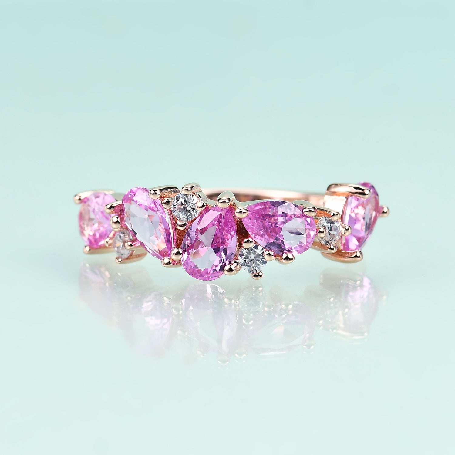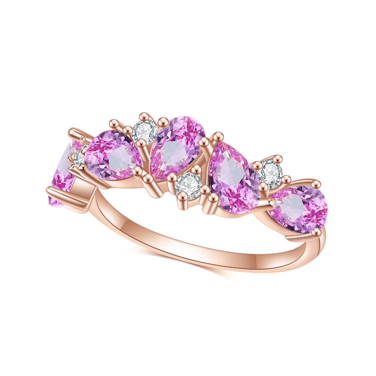 S925Sterling Silver Inlaid Pink Corundum Ring High-end Elegant Light Luxury Colorful Gemstone Rose Gold Ring